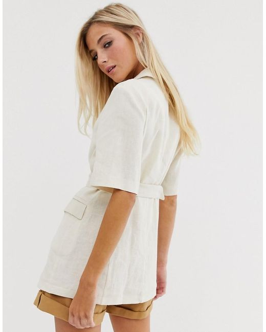 Linnen Blazer Met Korte Mouwen In Beige in het blauw voor dames