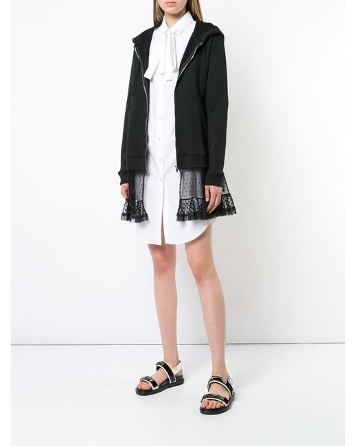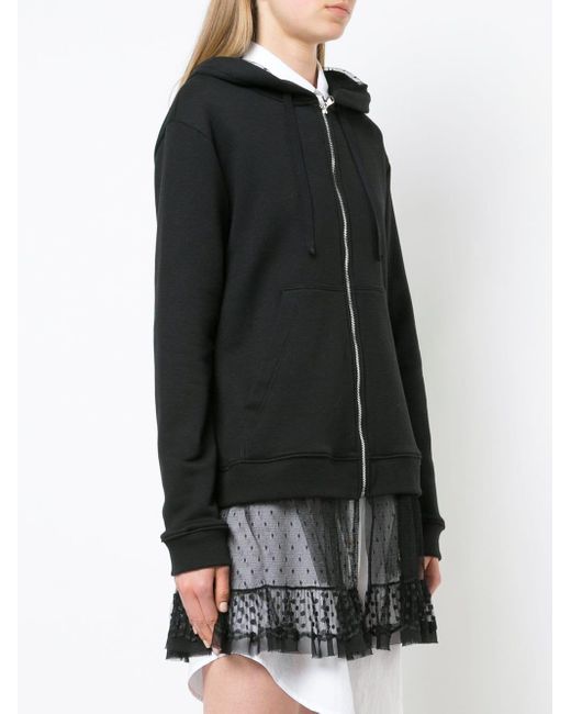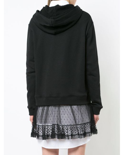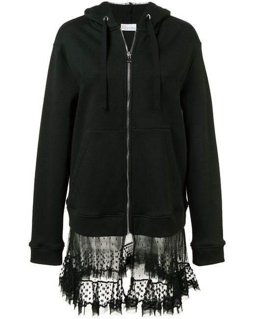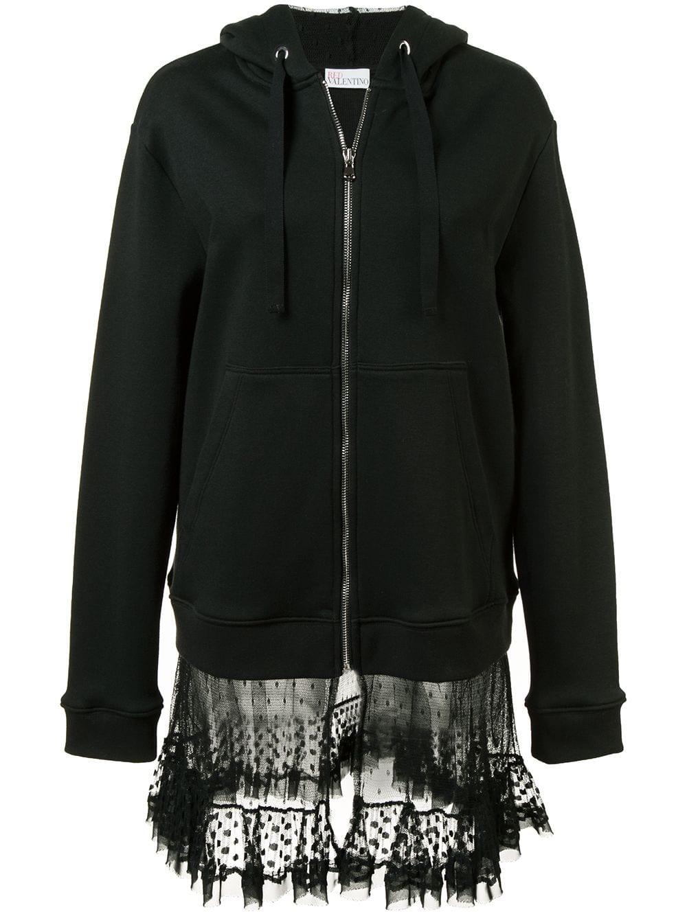 Transparante rits met rits met vlakken van REDValentino uitgevoerd in gemixt katoen voorzien van capuchon met trekkoorden, rits aan de voorkant, lange mouwen, elastische manchetten, kangaroe zakken en transparant inzetstuk. Kleur: zwart
