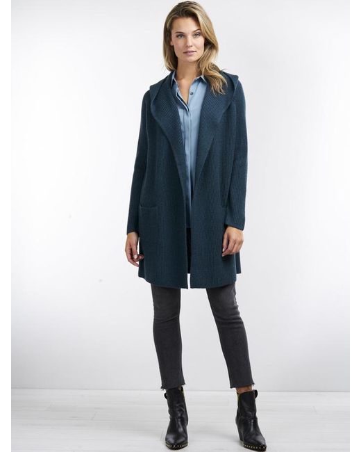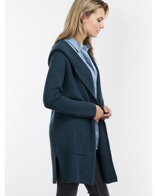 Lang Geribd Merino-vest Met Capuchon in het groen voor dames
