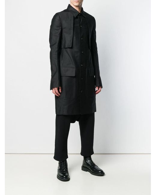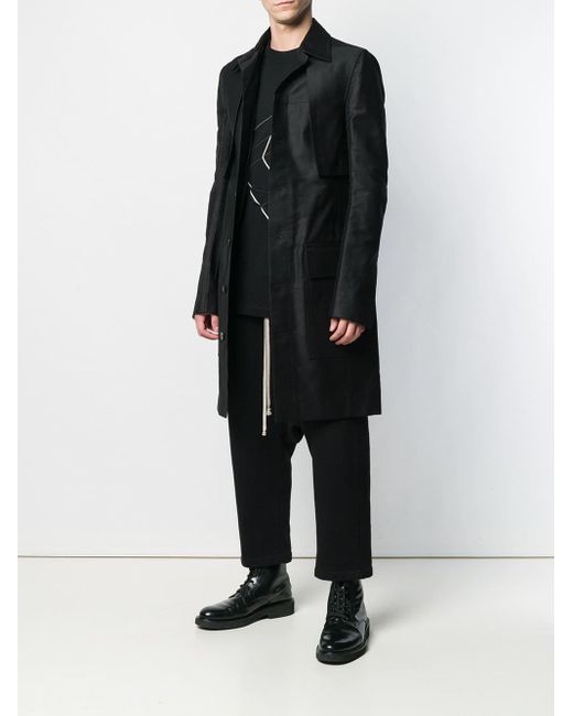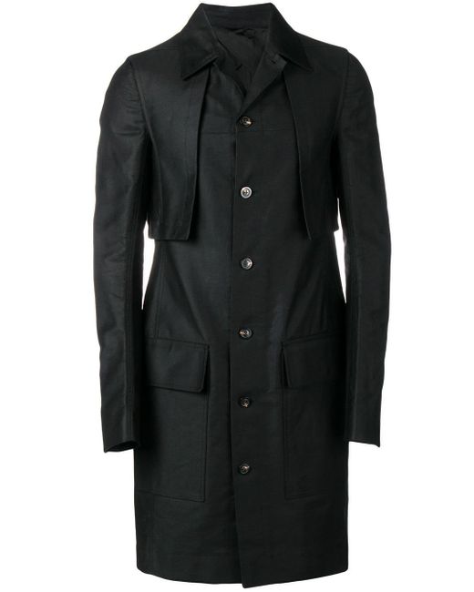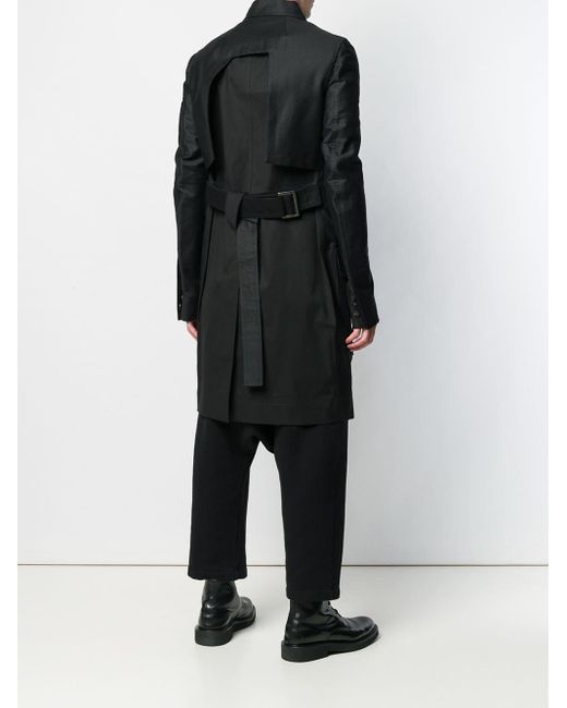 Gecoate trenchcoat van Rick Owens uitgevoerd in gemixt katoen voorzien van klassieke kraag, strak silhouet, knoopsluiting aan de voorzijde en ceintuur. Kleur: zwart