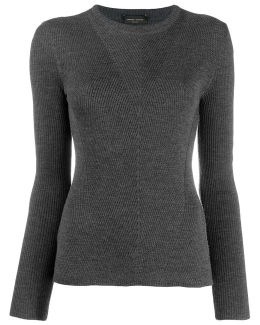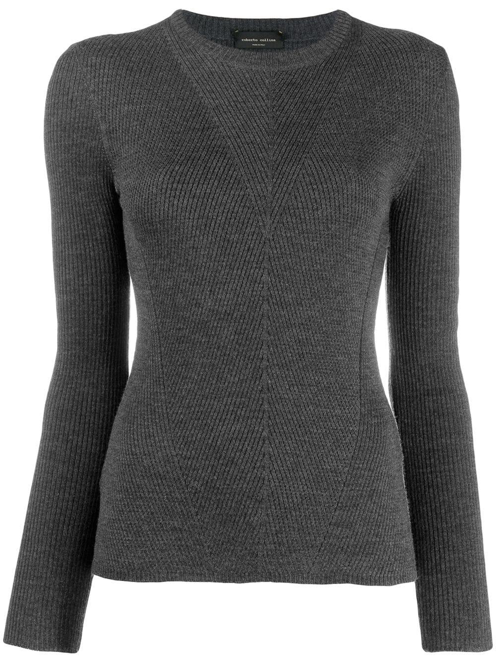 Geribbelde sweater van Roberto Collina uitgevoerd in wol voorzien van ronde hals, geribd design, lange mouwen en rechte zoom. Kleur: grijs