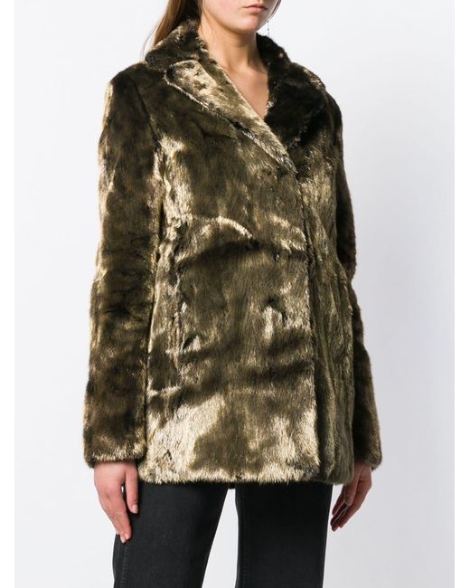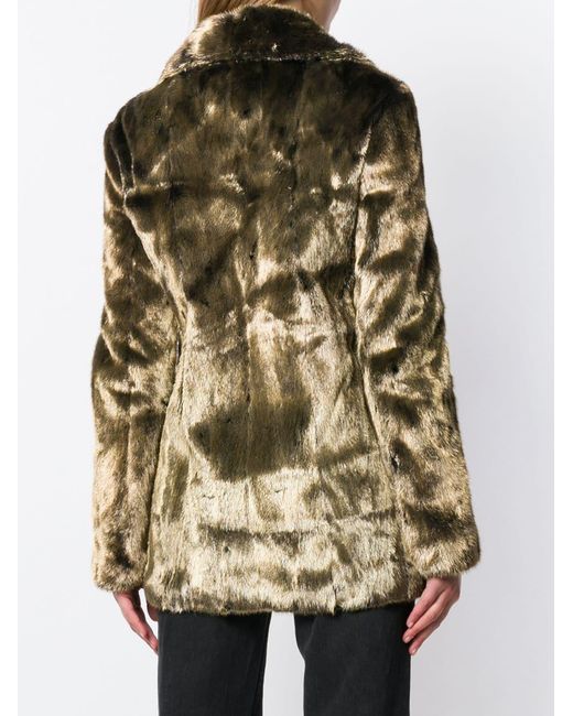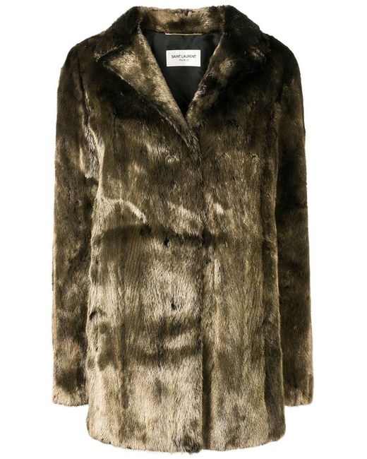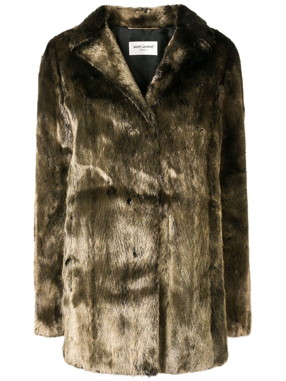 Metallic mantel van Saint Laurent voorzien van straight-fit, brede revers, knoopsluiting aan de voorzijde en metallic glans. Kleur: groen