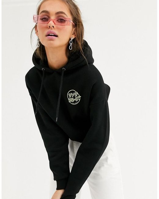 Hando - Cropped Hoodie Met Print In Zwart En Groen, Exclusief Bij Asos - Bk1 voor dames