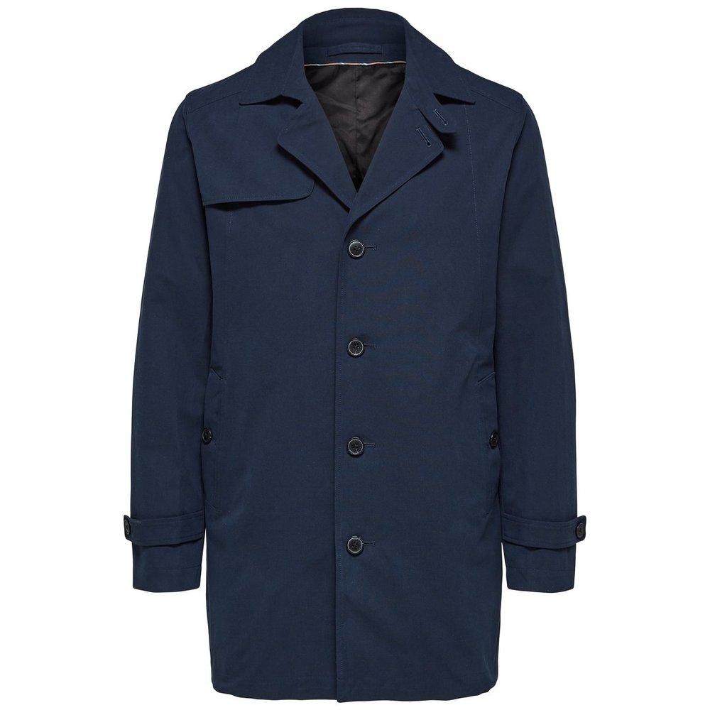 Trenchcoat voor heren - Klassieke epauletten aan de manchetten - Duurzame stof - Het model is 187 cm lang en draagt maat L Klassieke trenchcoat met een knoopsluiting. Deze single-breasted jas heeft stormkleppen en epauletten aan de manchetten voor een tijdloze look. Buitenkant: 58% Katoen, 25% Polyester, 17% Nylon, Voering: 100% Polyester. Kleur: blauw