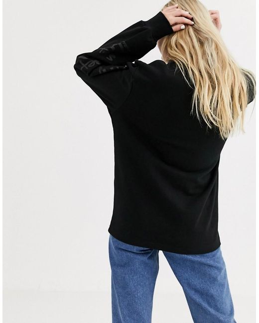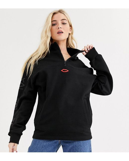 Sweatshirt Met 1/4-rits En Print Op De Mouw In Zwart - Bk1 voor dames