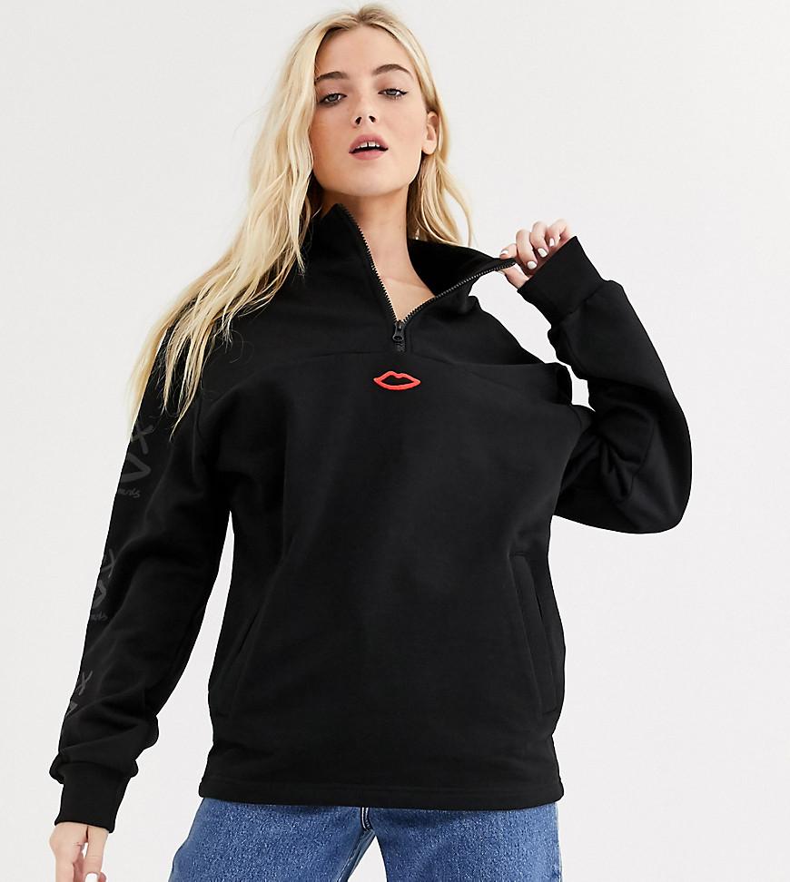 Sweatshirt van Sex Skateboards, Voor overdag, Opstaande boord met rits, Mouwen met logoprint, Zijzakken, Ruimvallende pasvorm, Baggy en casual look. Sinds ze zijn opgericht in Sheffield door Louis Slater, hebben de Sex Skateboards als een storm de skatewear-scene overgenomen door hun collectie met statement skatekleding. Bekend om hun kenmerkende lippenlogo en 'SEX'-slogan (een idee van Slater terwijl hij naar de Sex Pistols luisterde) zijn de ontwerpen van dit merk niet voor de angsthazen. Bekijk nu onze selectie van onze favoriete stukken - denk aan opvallende hoodies, T-shirts, sokken en tassen. Katoen/ print. Kleur: zwart