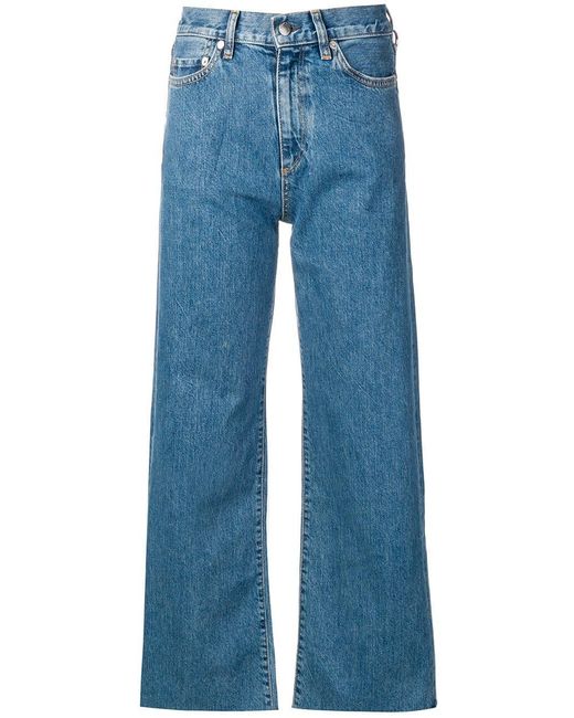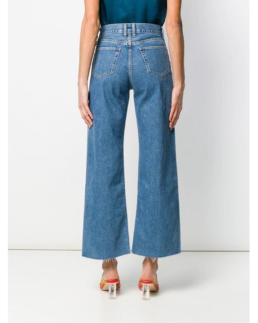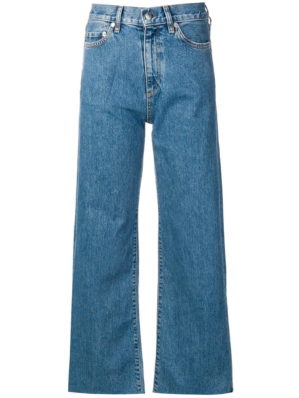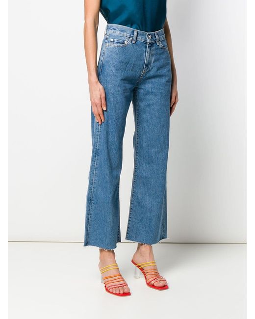 Jeans met hoge taille van Simon Miller uitgevoerd in katoen voorzien van riemlussen, knoop-en ritssluiting voorzijde, five-pocket-design, wijd uitlopende pijpen en enkellengte. Kleur: blauw