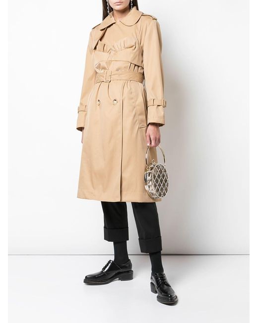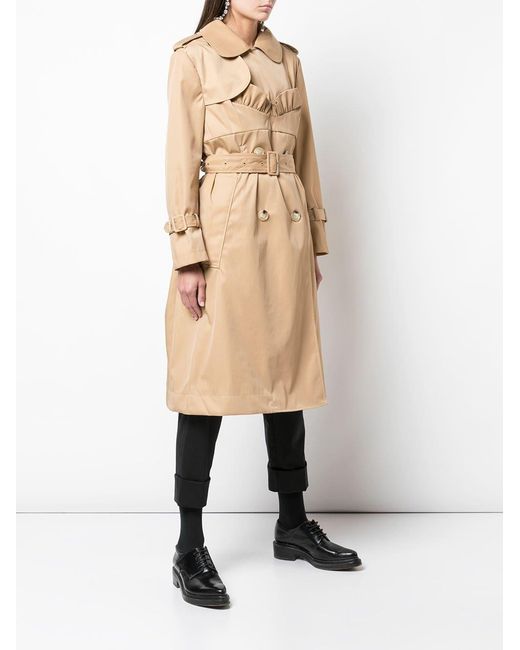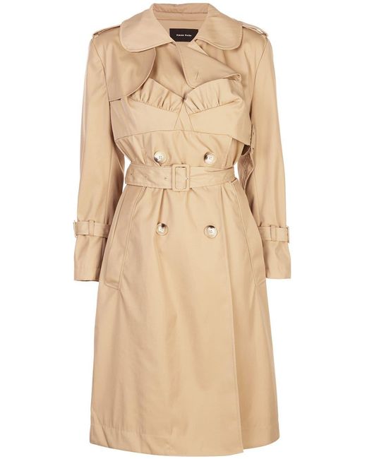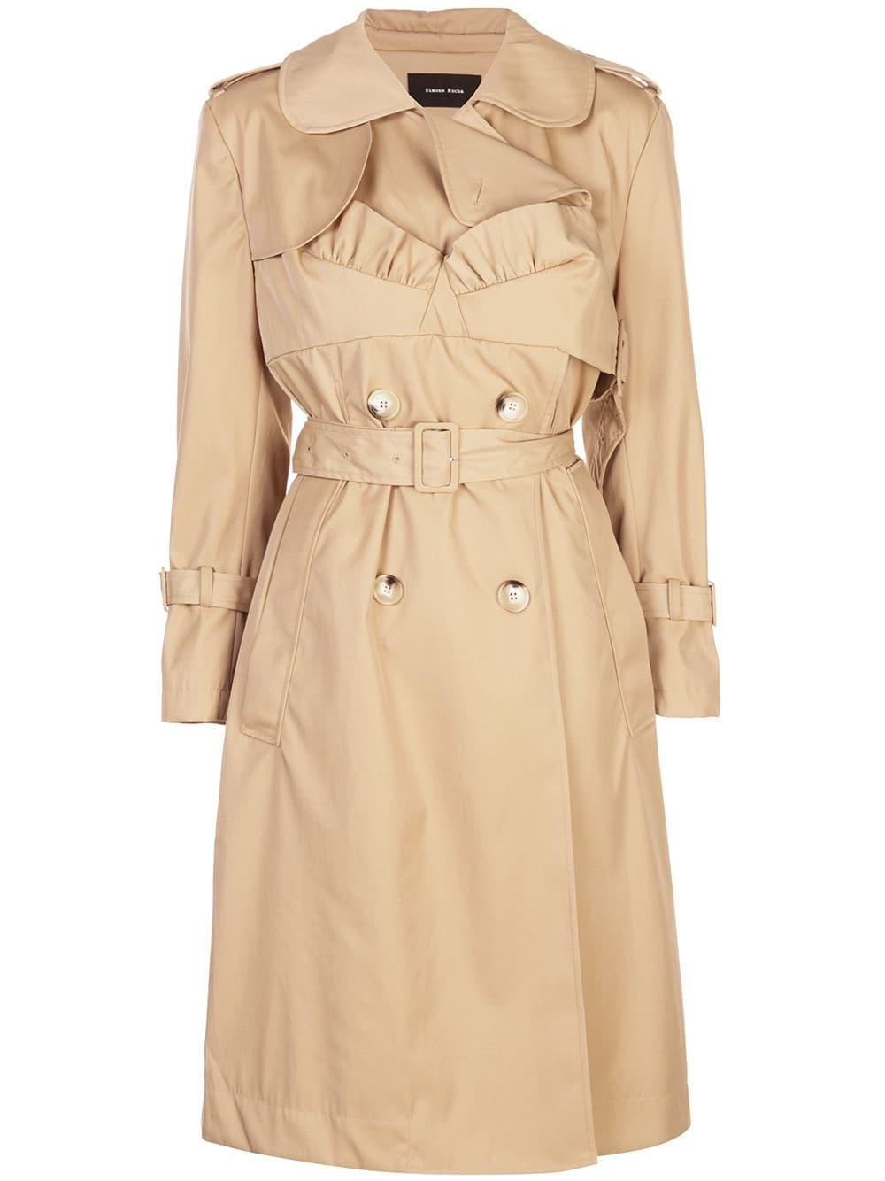 Trenchcoat met ceintuur van Simone Rocha uitgevoerd in gemixt katoen voorzien van sluiting met dubbele rij knopen aan de voorzijde, ceintuur, steekzijzakken, peter pan kraag, ruches aan zoom, knoopsluiting op de schouder en split bij de zoom achterzijde. Kleur: naturel