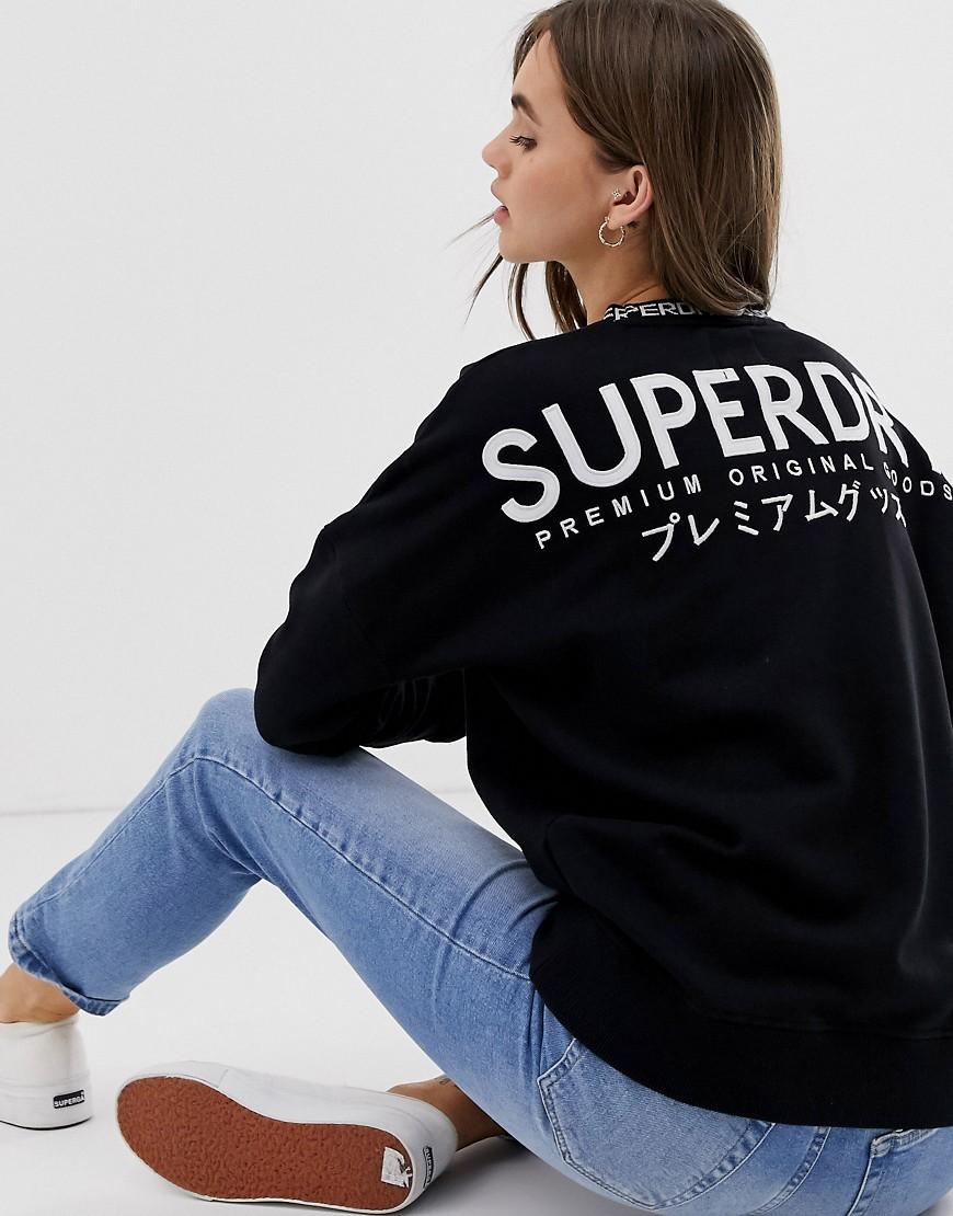 Sweatshirt van Superdry, Combineer met jeans en je bent klaar om te gaan, Ronde hals, Verlaagde schouders, Superdry-logo, Geribbelde boorden, Ruimvallende pasvorm, Baggy en casual look. Superdry combineert print geïnspireerde door Japan met vintage Americana styling. Het resultaat? Verwacht stoffen van kwaliteit, handgemaakte prints en elegante pasvormen die aansluiten op je dagelijkse outfits. Bekijk onze collectie die bestaat uit vanalles, van schoenen tot badkleding, maar ook casual T-shirts, jurken en gebreide kleding waarmee je een perfecte look kan creëren. Katoen/ print. Kleur: zwart