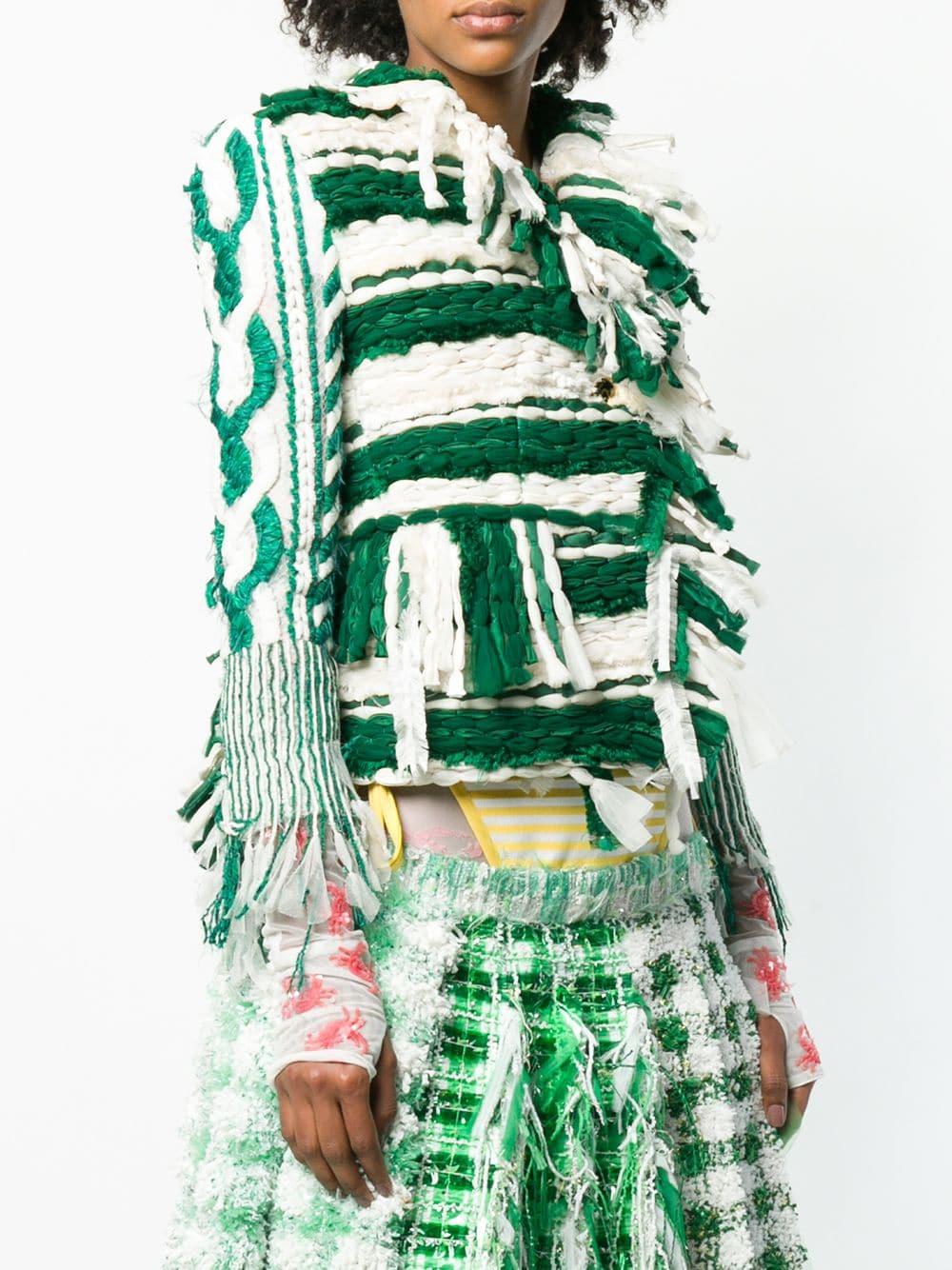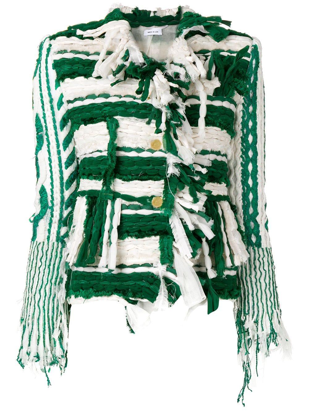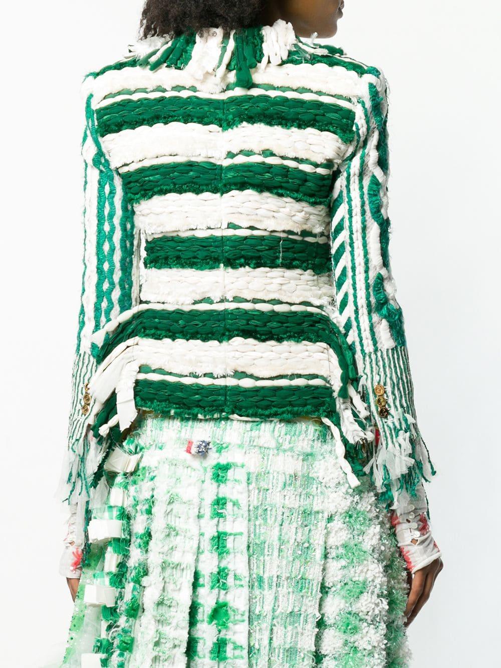 Ga naar FarfetchSince its launch in 2003, Thom Browne's namesake label has gained notoriety for its clean designs and use of luxury materials. Crafted from light green and white silk, this shrunken tweed sport coat features a collarless design, a front button fastening, long sleeves, button cuffs, a chest pocket, two front pockets, raw edges and frayed edges. Kleur: groen