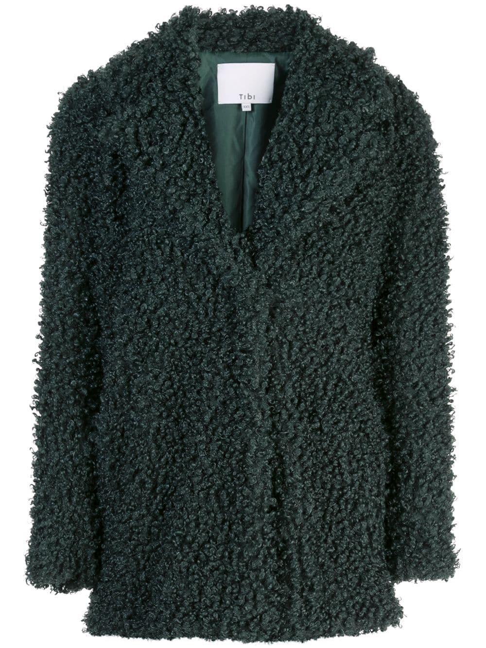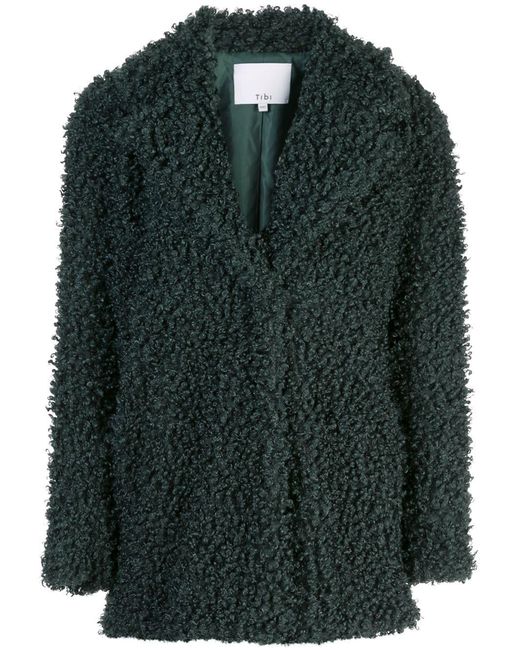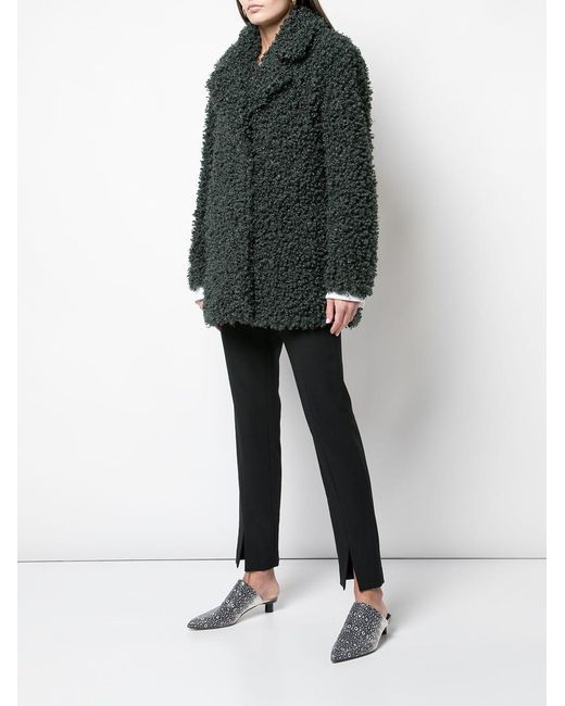 Mantel met textuur van Tibi voorzien van verborgen sluiting voorzijde, steekzijzakken, klassieke revers en loose fit. Kleur: groen