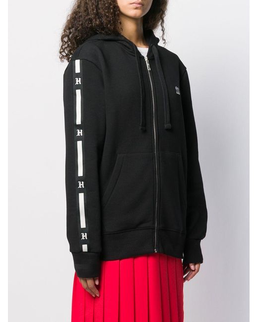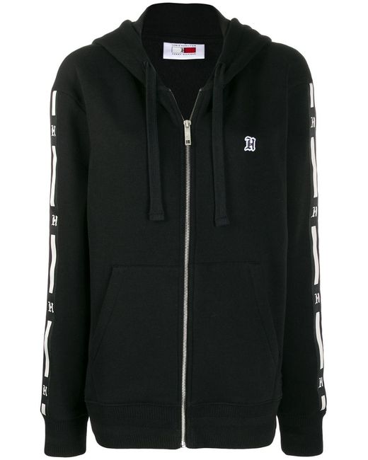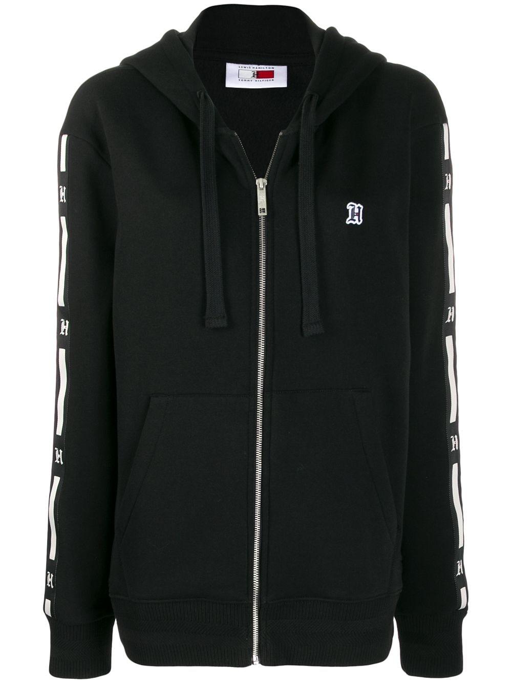 Hoodie met logoprint van Tommy Hilfiger voorzien van rits aan de voorkant, zijzakken en rechte zoom. Kleur: zwart