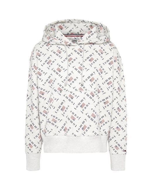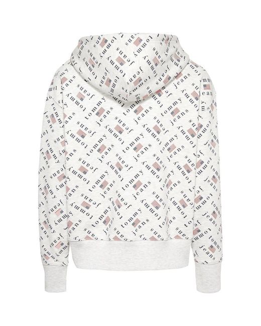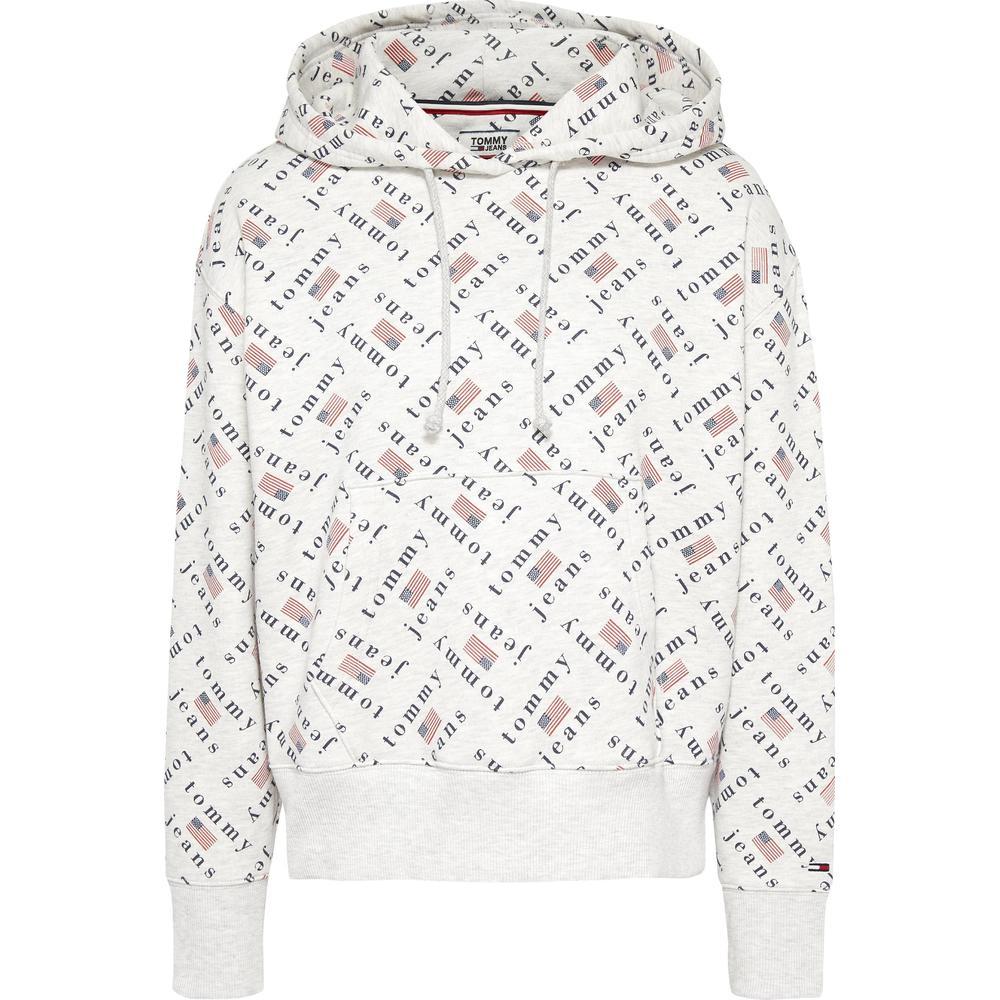 De hoodie met all-over print heeft een capuchon met aantrekkoord, een steekzak aan de voorzijde, en is gemaakt van 50% katoen en 50% polyester. Model: dw 0dw 07415. Kleur: wit