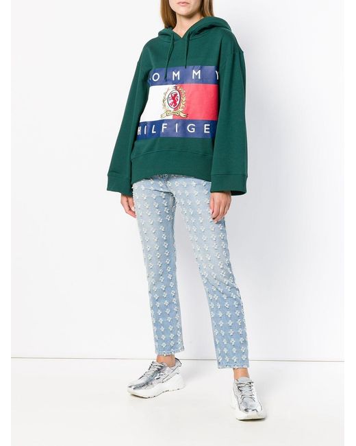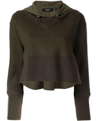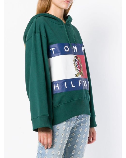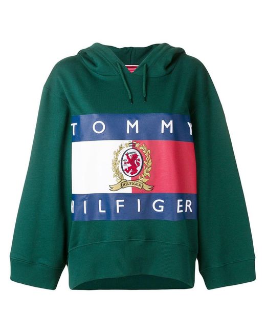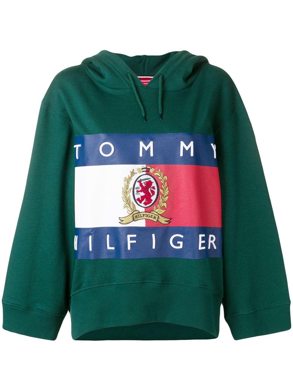Op de achterkant print cropped hoodie van HILFIGER COLLECTION uitgevoerd in gemixt katoen voorzien van capuchon met trekkoord, laag geplaatste mouwinzetten, lange en wijd uitgesneden mouwen en geribde zoom en manchetten. Kleur: groen