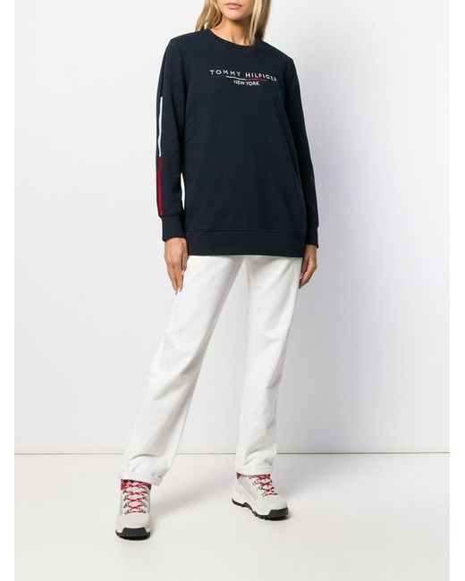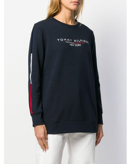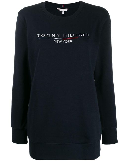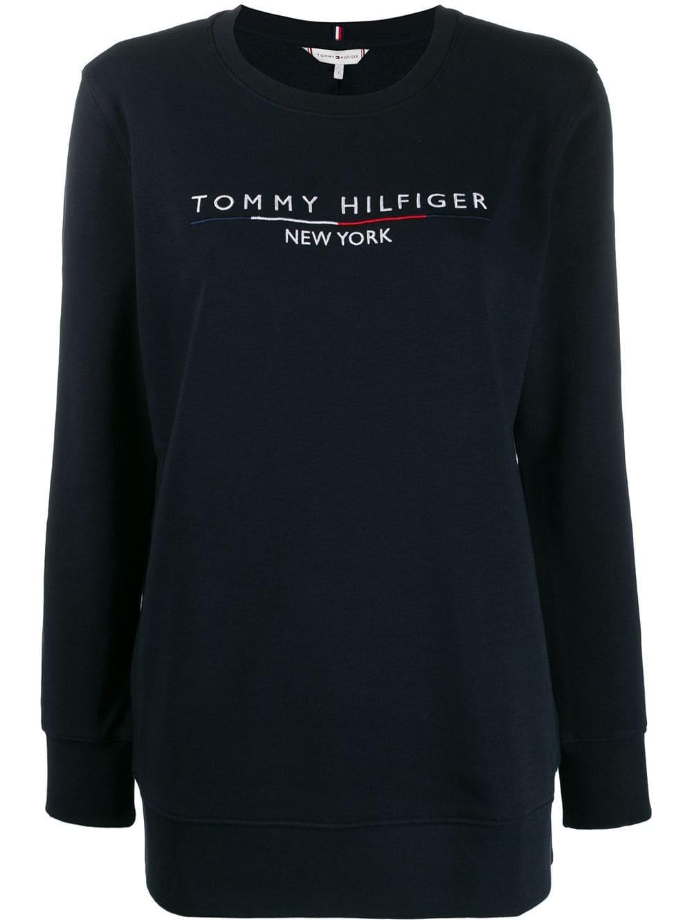 Sweater met logoprint van Tommy Hilfiger voorzien van ronde hals, lange mouwen, geprint logo aan voorzijde en rechte zoom. Kleur: blauw