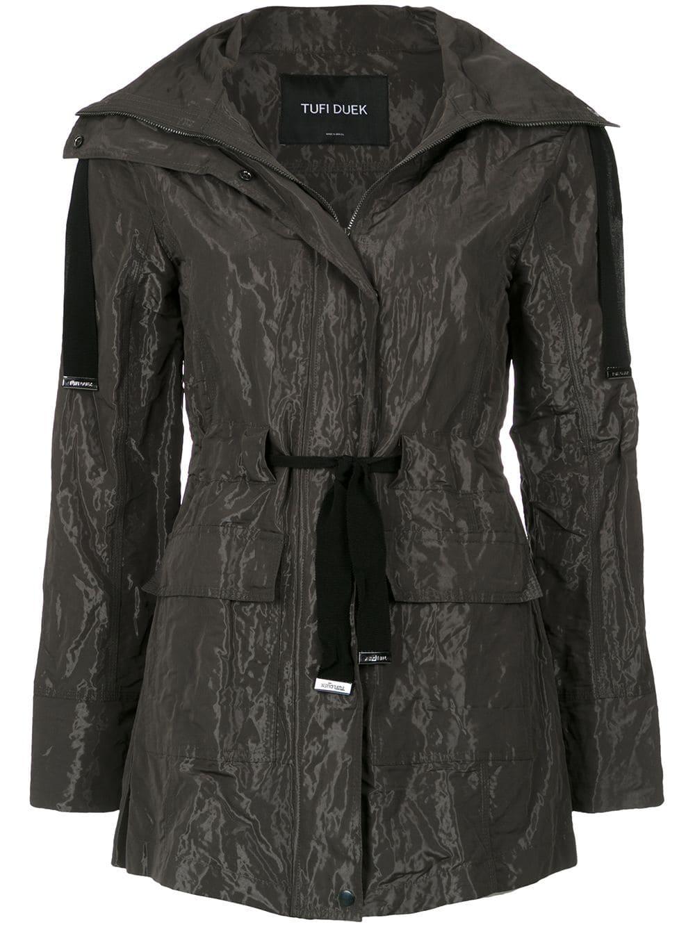 Tailleband met trekkoord van Tufi Duek voorzien van lange mouwen, open aan de voorkant en getailleerd. Kleur: groen