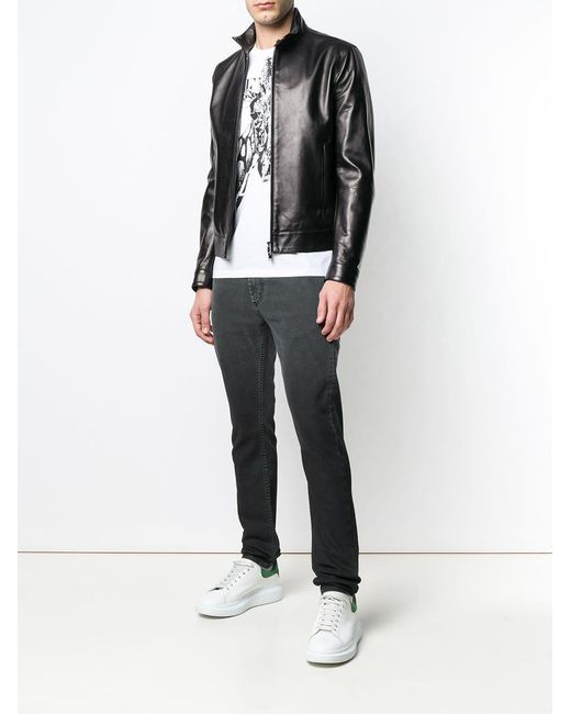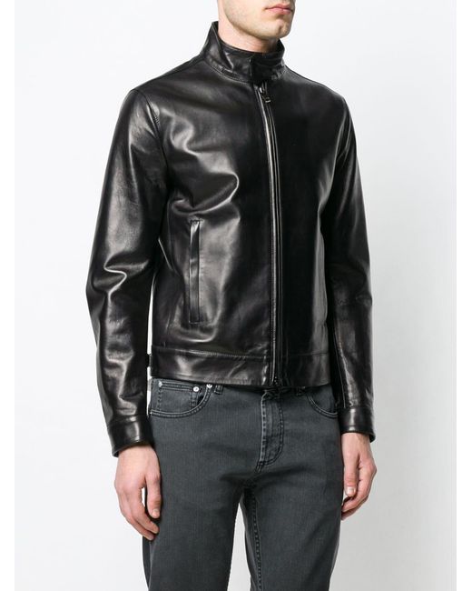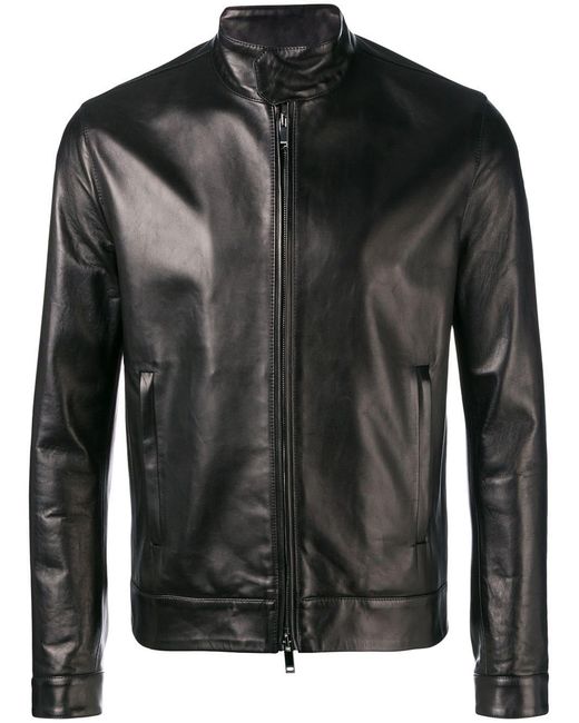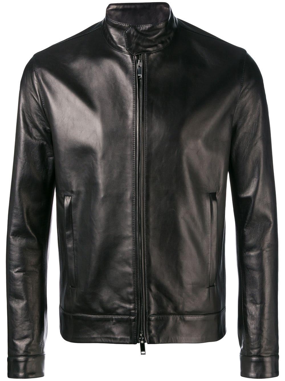 Jack met trechterhals van Valentino uitgevoerd in lamsleer voorzien van rits aan de voorkant, twee voorzakken en lange mouwen. Kleur: zwart