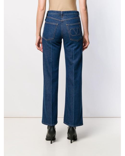 Garavani Vlogo Jeans Met Wijde Pijpen in het blauw voor dames