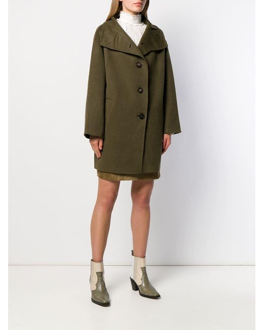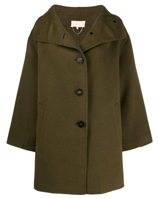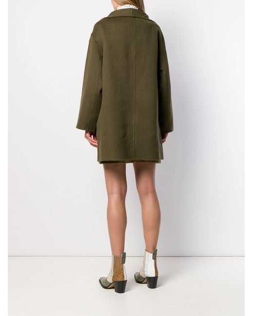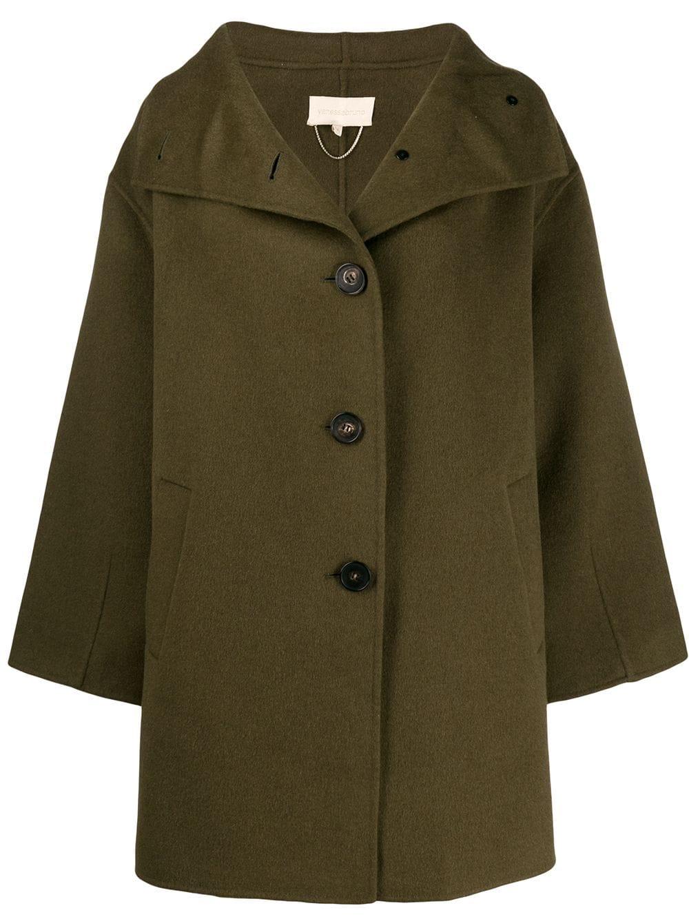 Mantel met enkele rij knopen van Vanessa Bruno voorzien van brede kraag, knoopsluiting aan de voorzijde, lange mouwen en oversized pasvorm. Kleur: groen