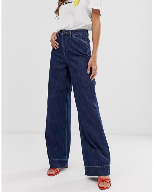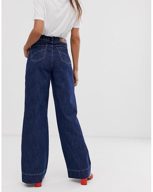 Jeans Met Hoge Taille En Wijde Pijpen in het blauw voor dames