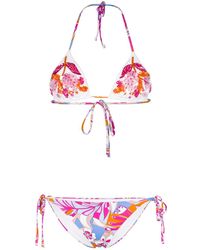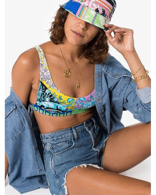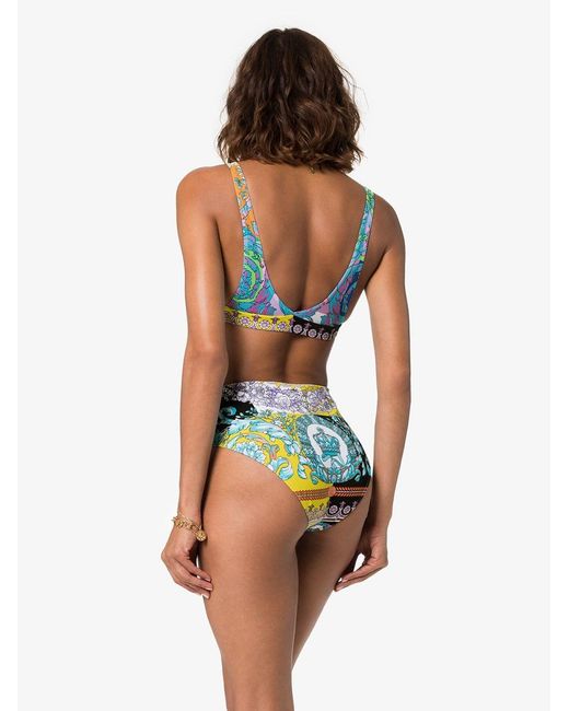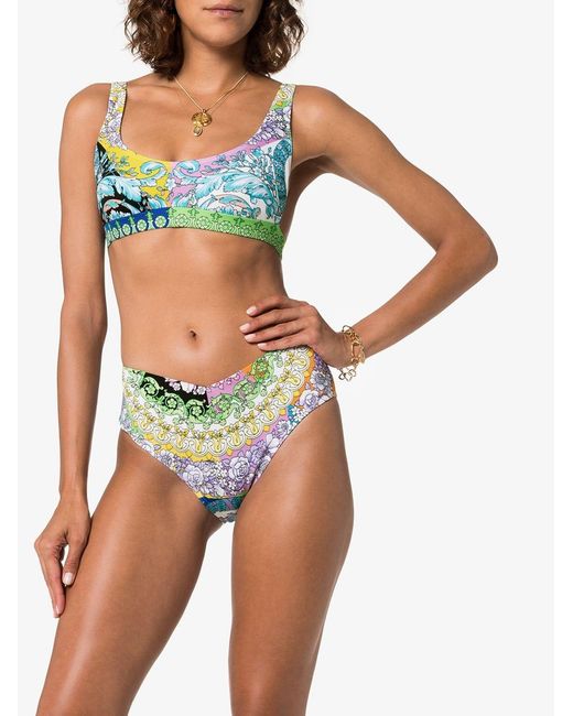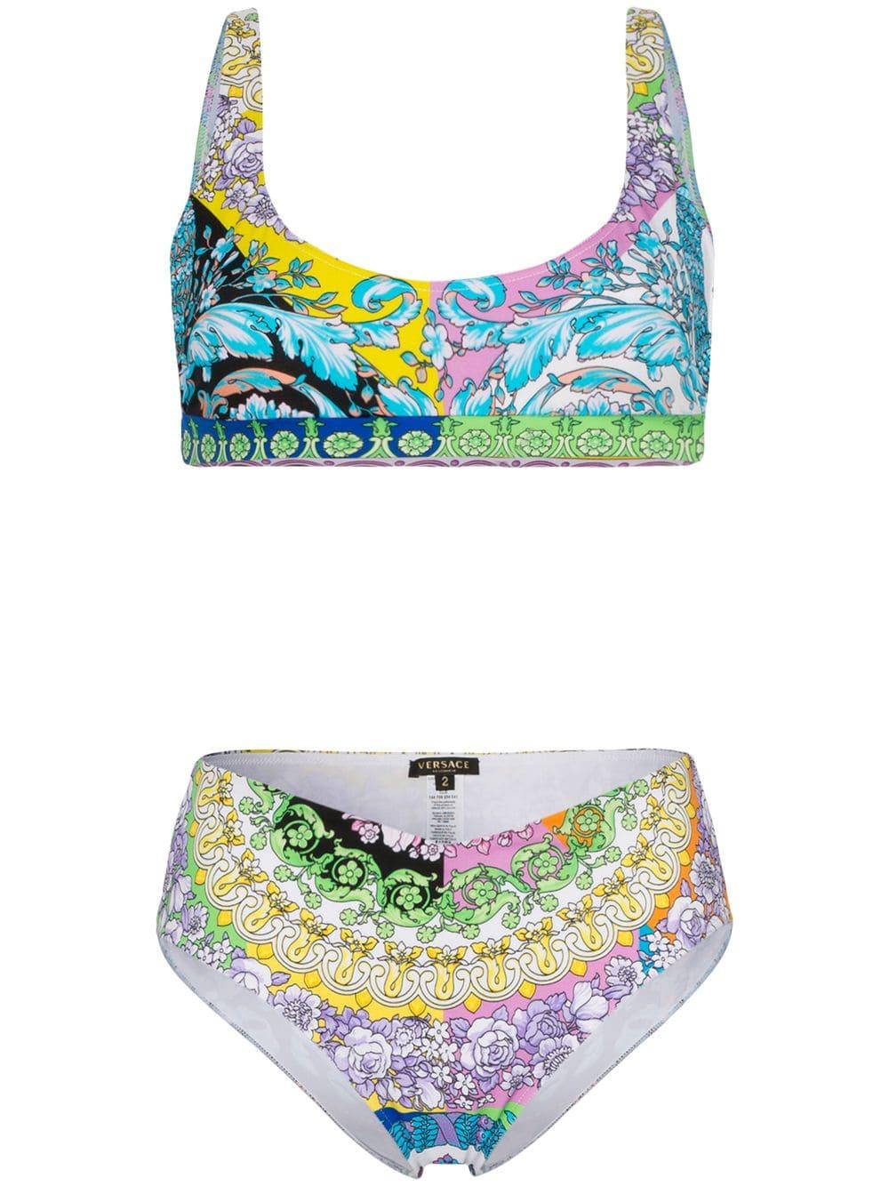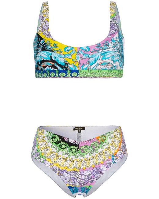 Bikini met bloemenprint van Versace voorzien van ronde hals, v-vormige achteruitsnede en mid-rise. Zwemkleding moet over uw eigen kleding aan worden gepast. Kleur: blauw