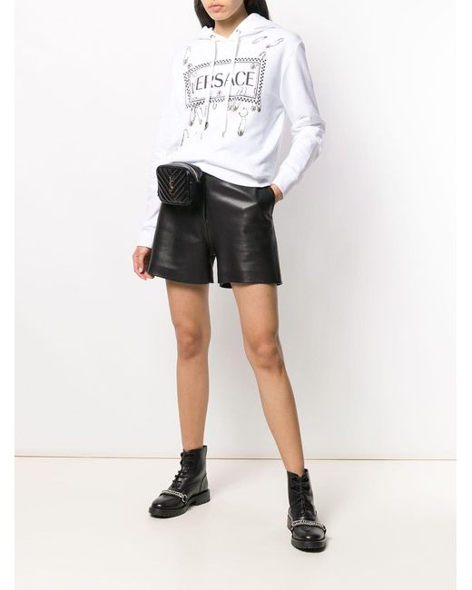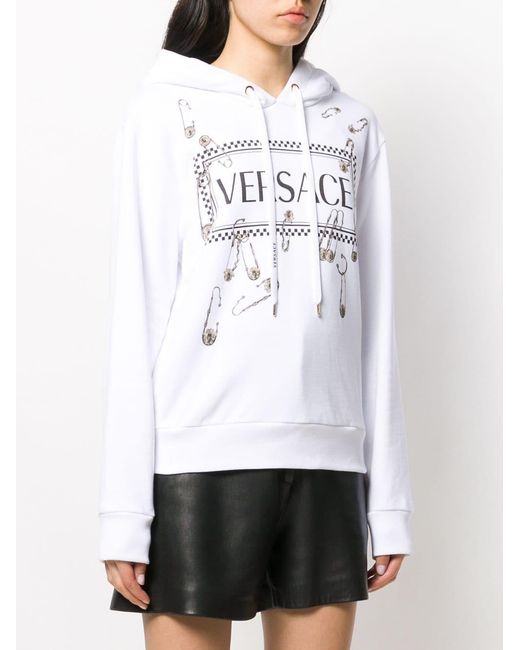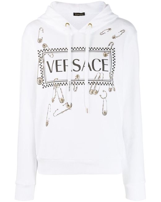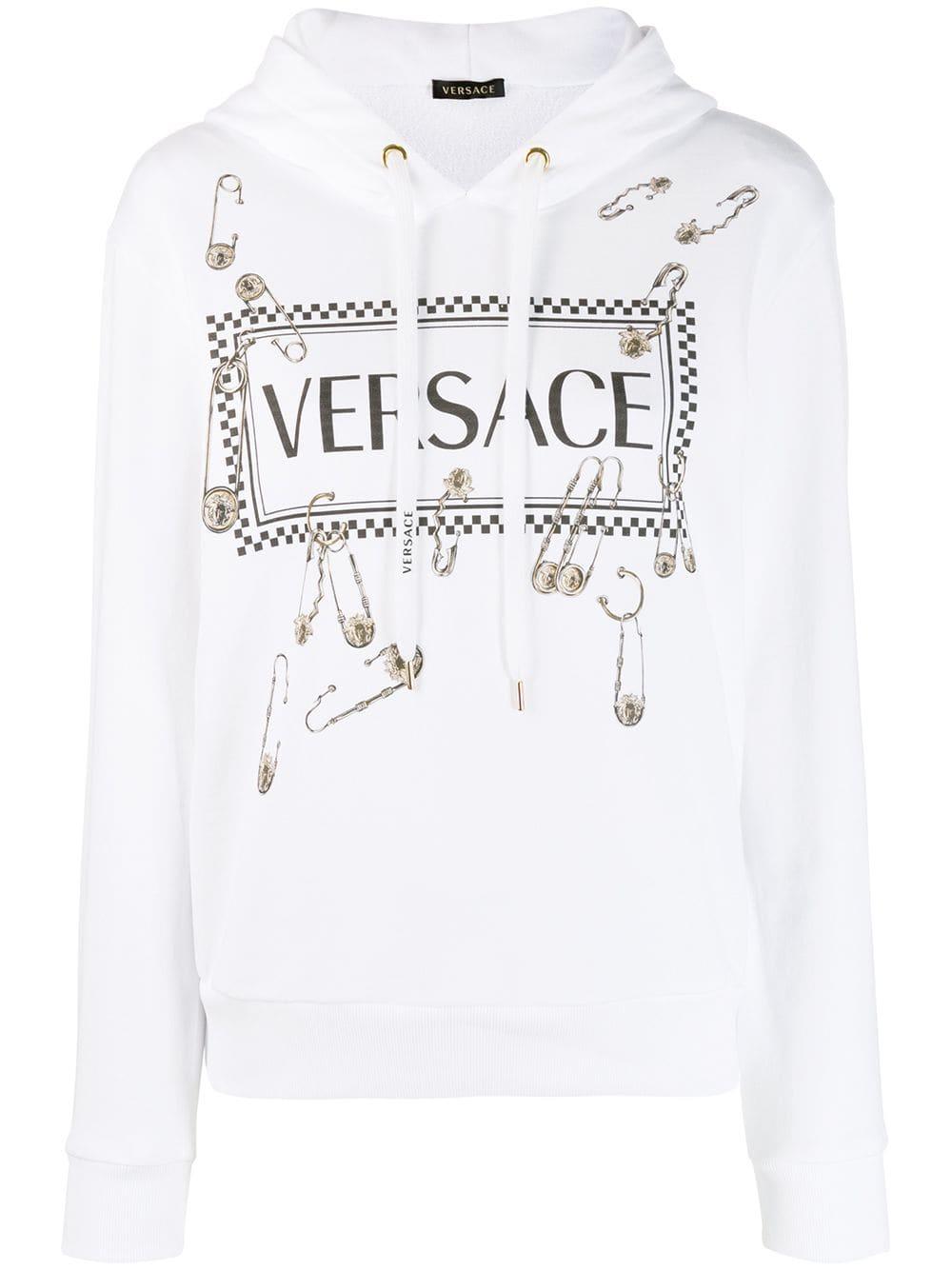 Hoodie met veiligheidsspeld van Versace uitgevoerd in katoen voorzien van capuchon, capuchon met trekkoorden, logo stempel middenvoor en lange mouwen. Kleur: wit