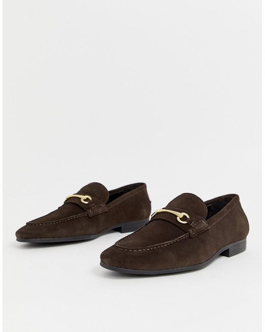 Suède Loafers Met Gouden Trens In Bruin voor heren