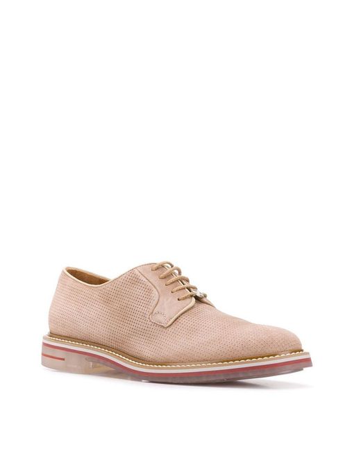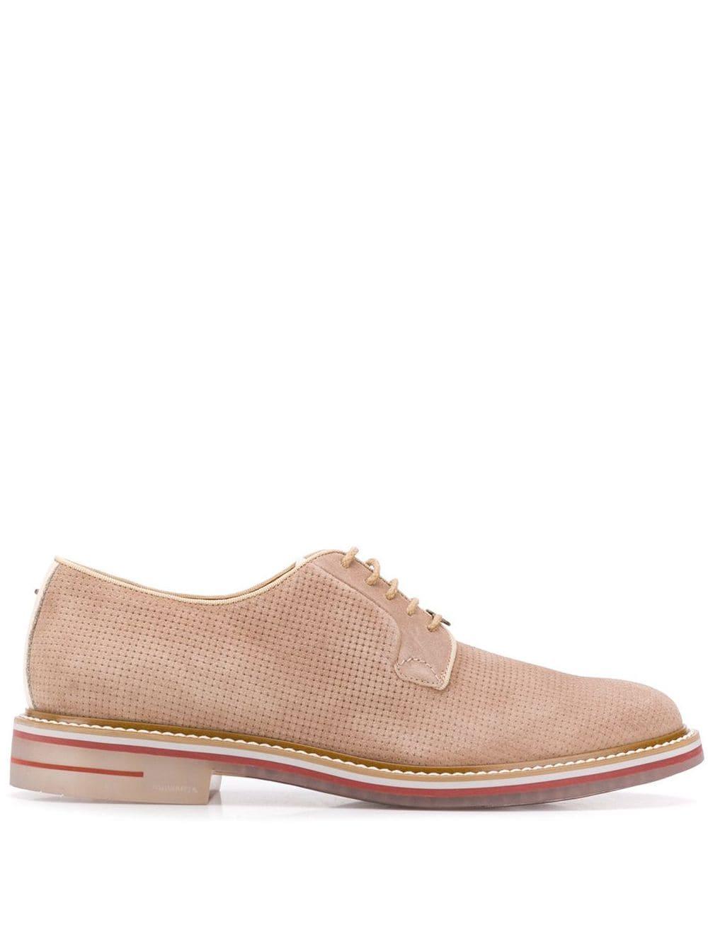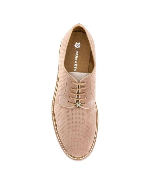 Derby schoenen van BRIMARTS uitgevoerd in suede voorzien van amandelvormige neus, veters aan voorkant, binnenzool met logo-afdruk en rubberen zool. Kleur: naturel