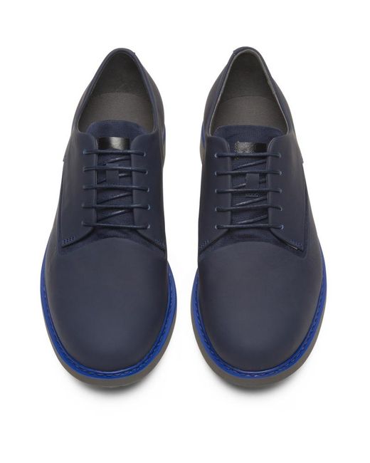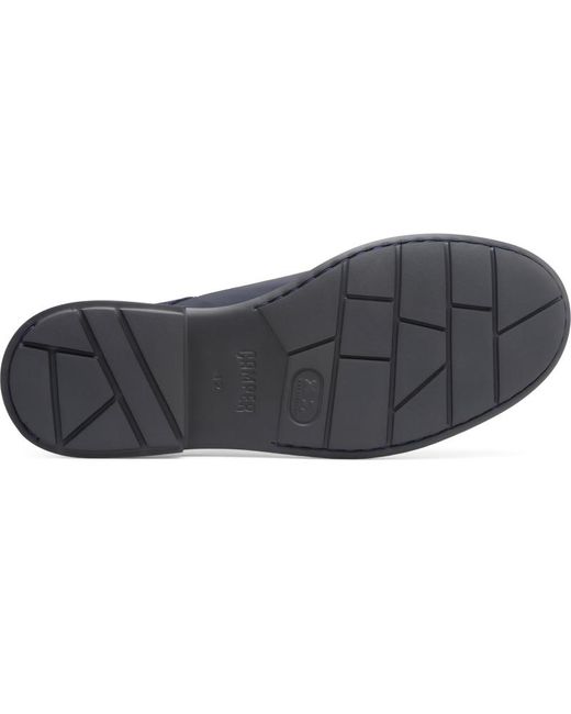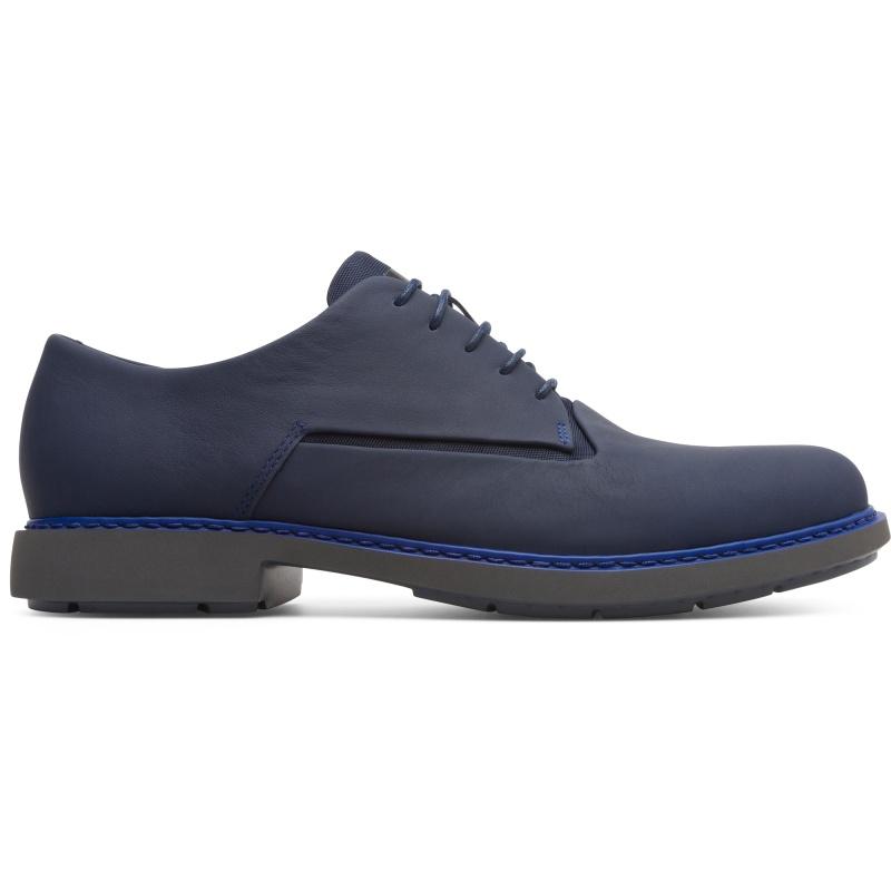 Mat leer met rubber / nylon Kleur: marineblauw EVA-buitenzool: licht Buitenzool met verticale cuts: Flexibiliteit Stiksels rondom: meer duurzaamheid. Gecertificeerd door de Leather Working Group 54 % Varkensleer 23 % Katoen 23 % Stof (60% Nylon - 40% PU) - Deze marineblauwe herenschoenen zijn de eigentijdse versie van het iconische silhouet. De bovenkant is 360°-gestikt voor extra duurzaamheid, en de ronde teen voegt een verfijnde touch toe. De lichtgewicht buitenzolen zijn gestikt en glad gemaakt met de hand en hebben verticale inkepingen voor meer flexibiliteit.