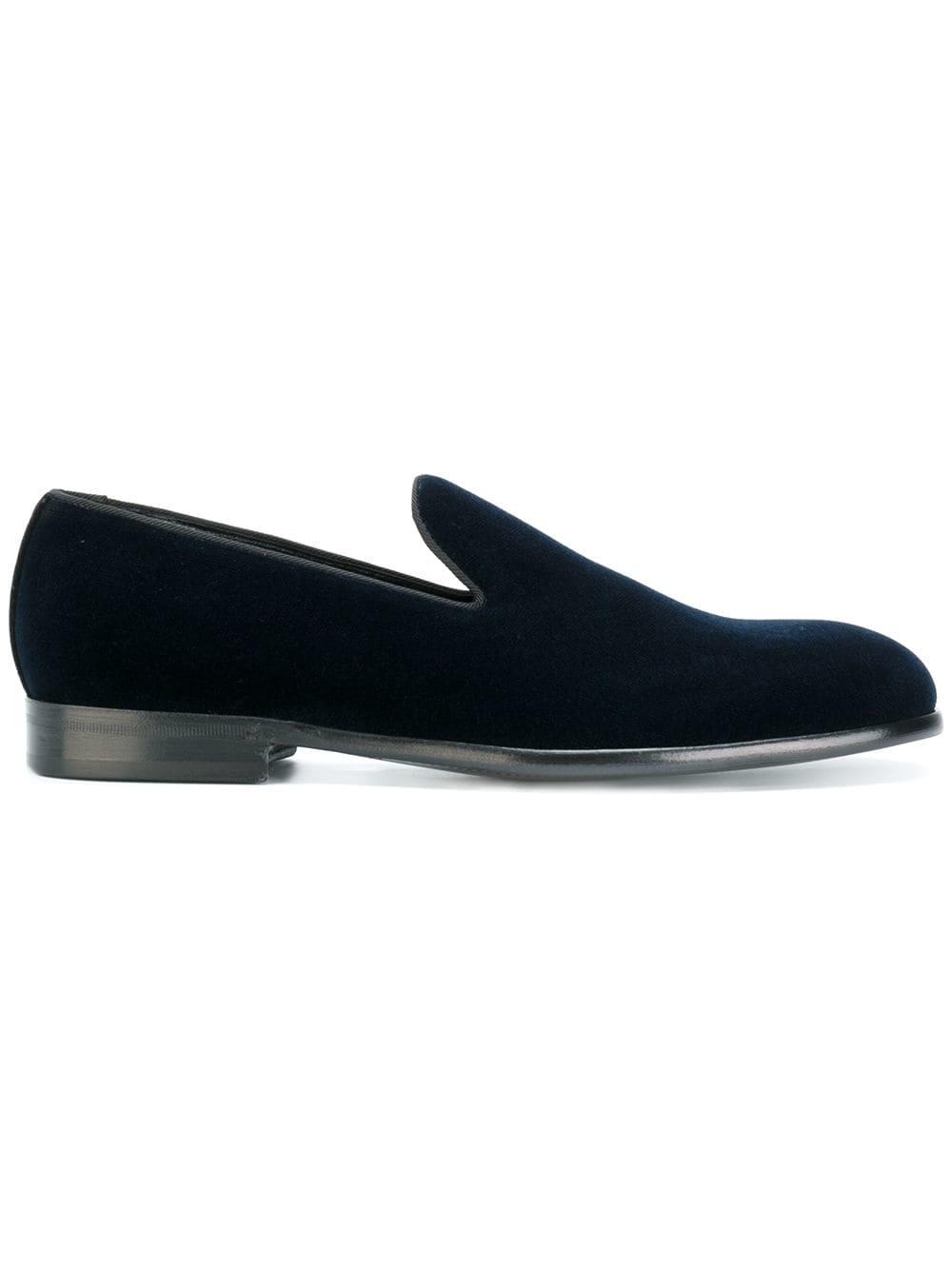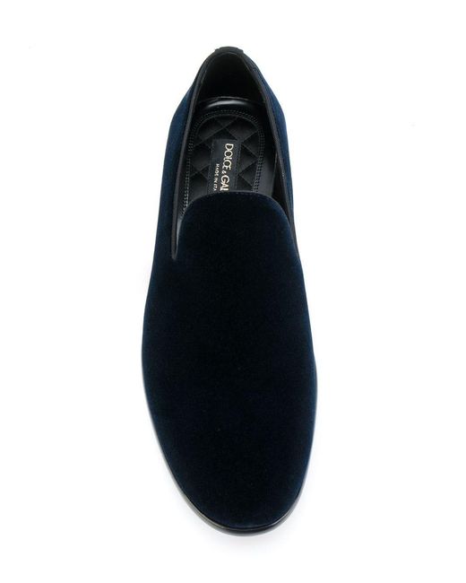 Milan pantoffels van Dolce & Gabbana voorzien van ronde neus, logo in reliëf in het voetbed, leren zool en instappers. Kleur: blauw
