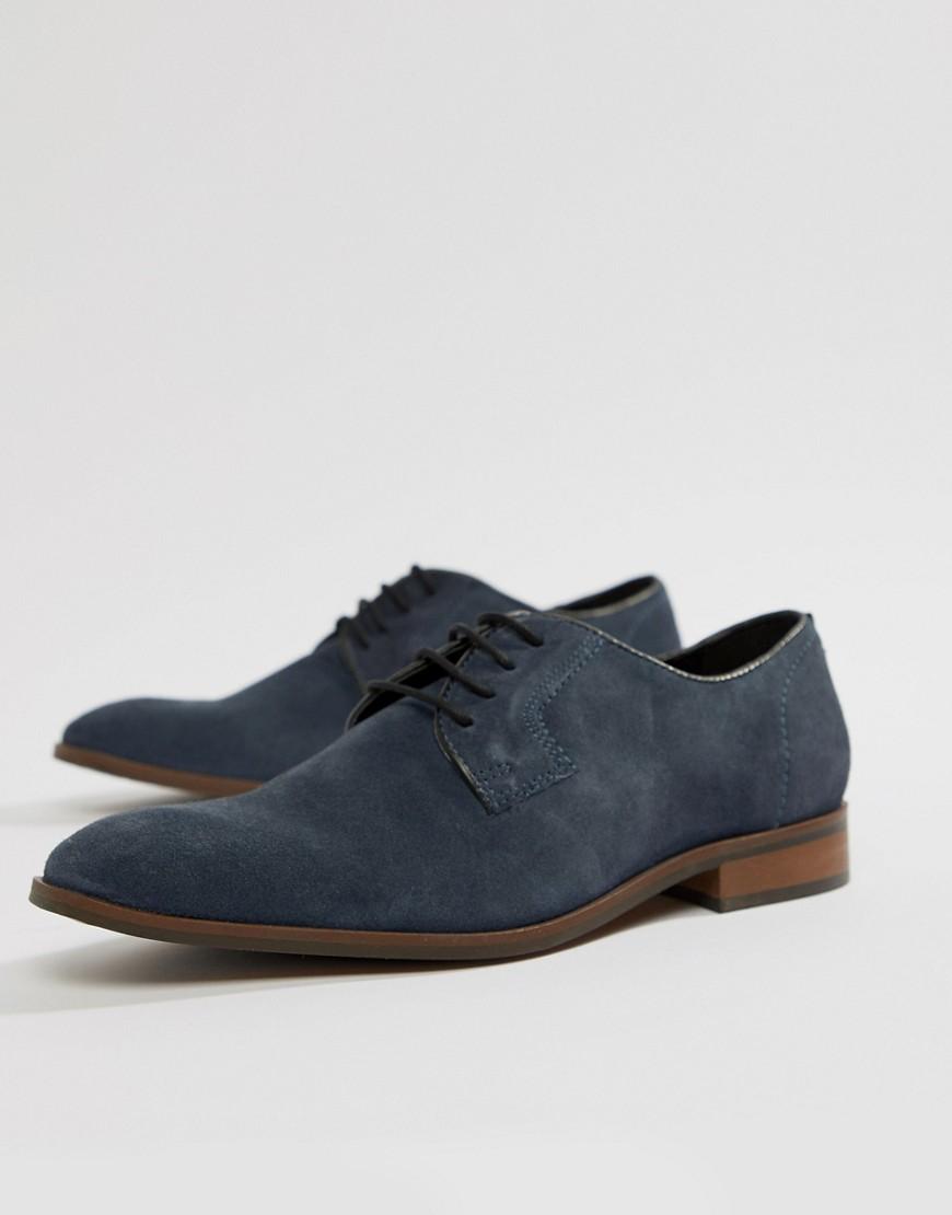 Sude Schoenen Met Veters In Marineblauw Sude