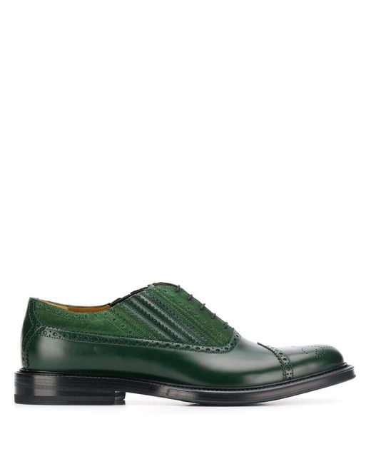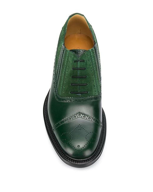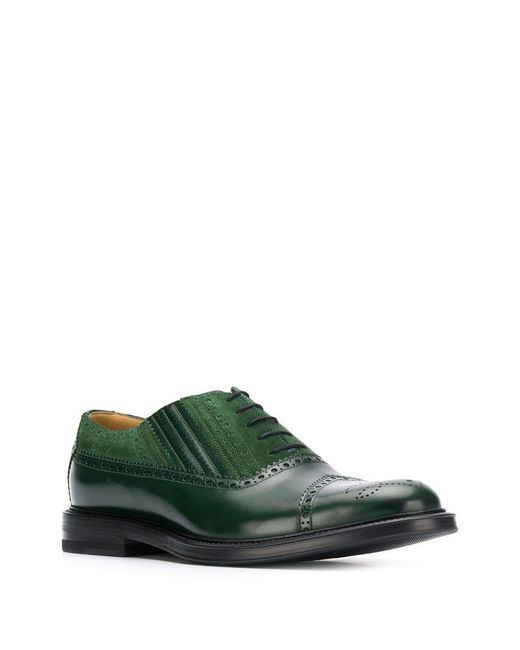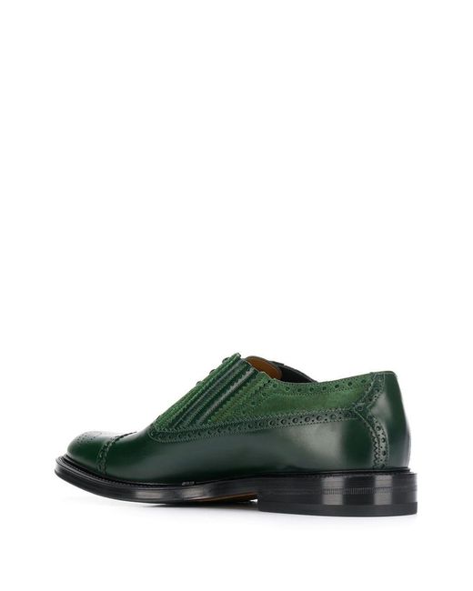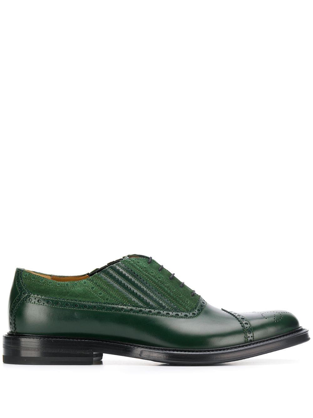 Brogues met veters van Gucci uitgevoerd in leder voorzien van amandelvormige neus, leren voetbed, vetersluiting, contrasterende inzetstukken en platte hak. Kleur: groen
