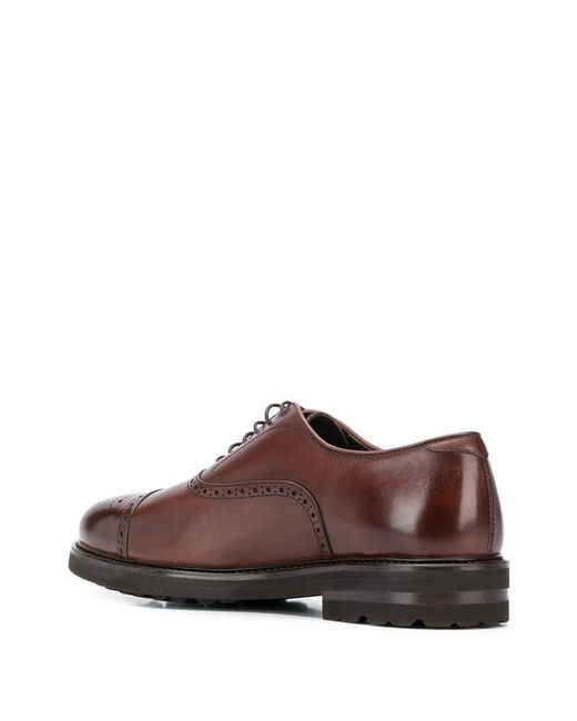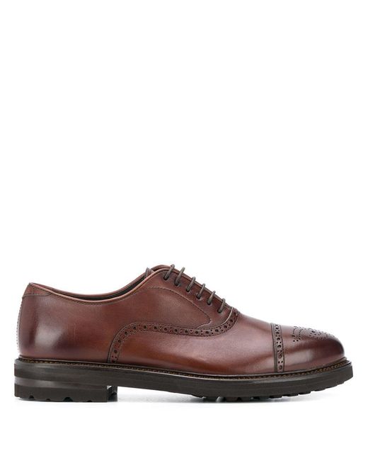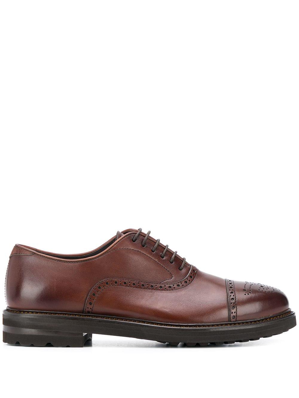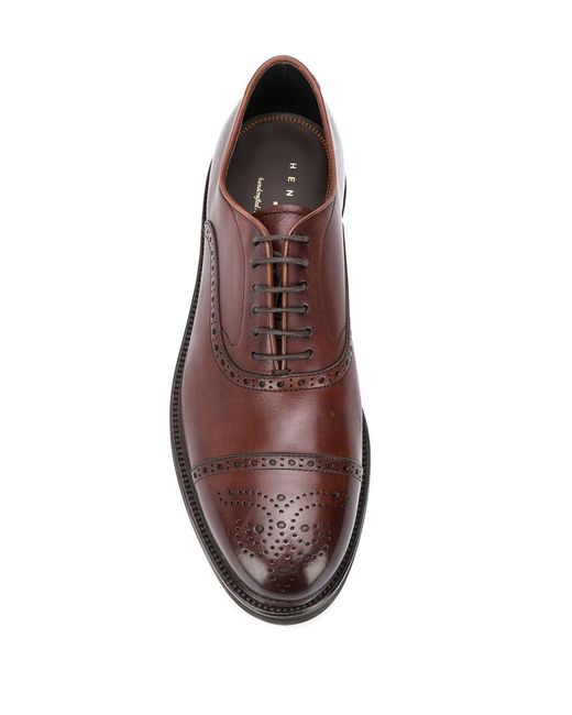 Oxford veterschoenen van Henderson Baracco voorzien van geperforeerd, amandelvormige neus, veters aan voorkant, binnenzool met logo-afdruk, lederen voering en geribbelde rubberen zool. Kleur: bruin