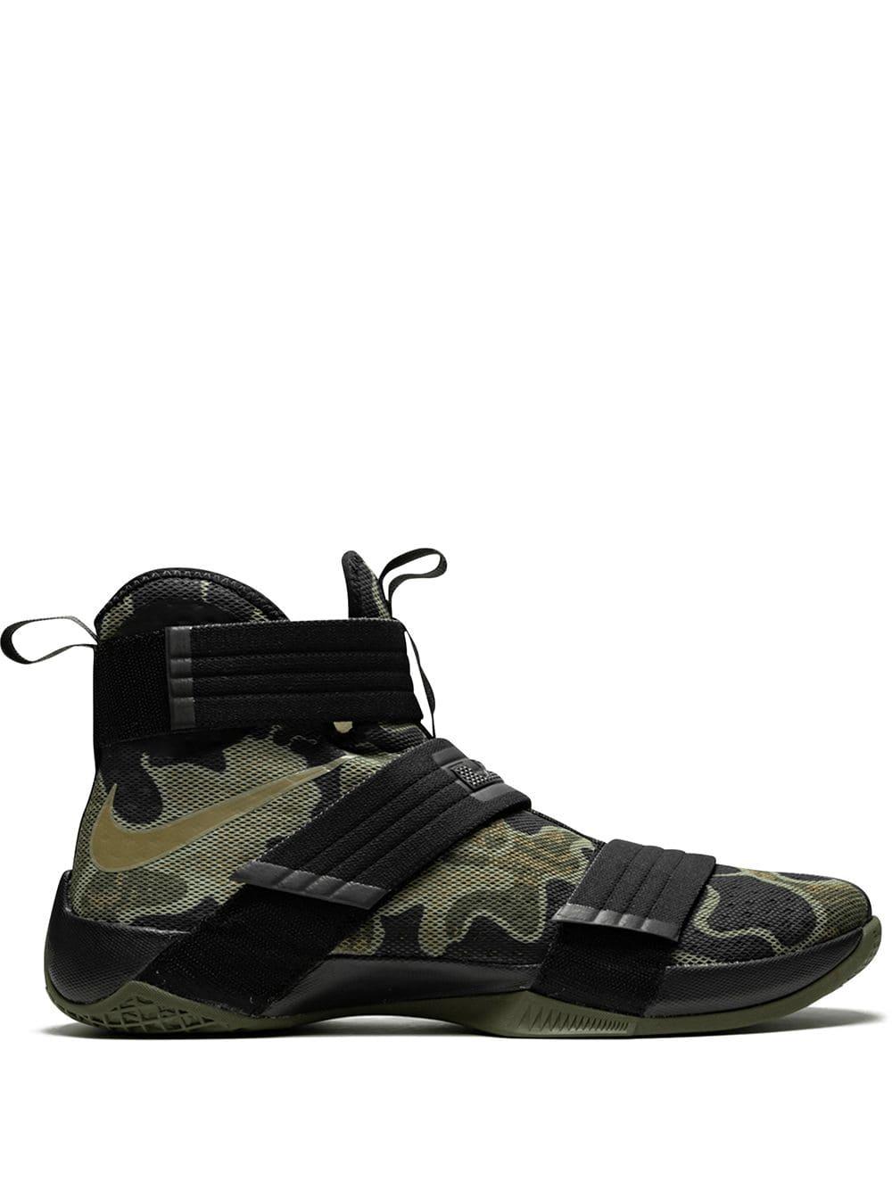 Lebron Soldier 10 SFG sneakers van Nike voorzien van lusje aan de achterkant, geribbelde rubberen zool en camouflage patroon. Dit item is afkomstig van een premium marktplaats met ongedragen, uitverkochte en gewilde sneakers en andere streetwear items. Elk artikel wordt grondig geïnspecteerd door experts om de authenticiteit te garanderen. Kleur: groen