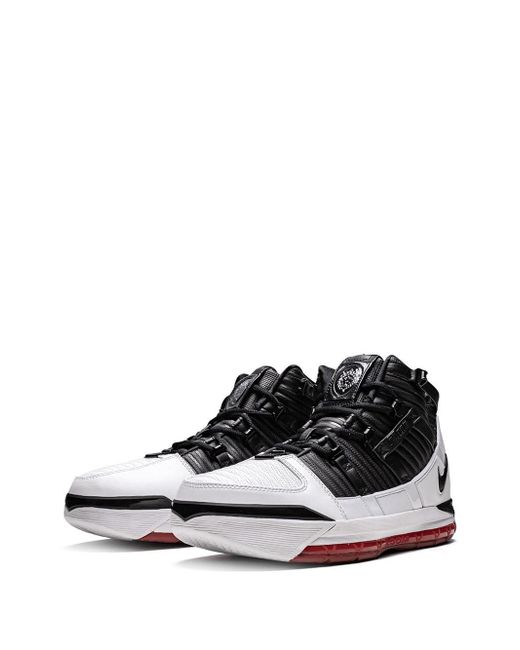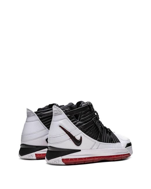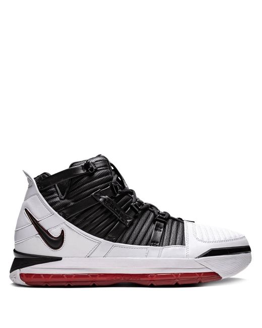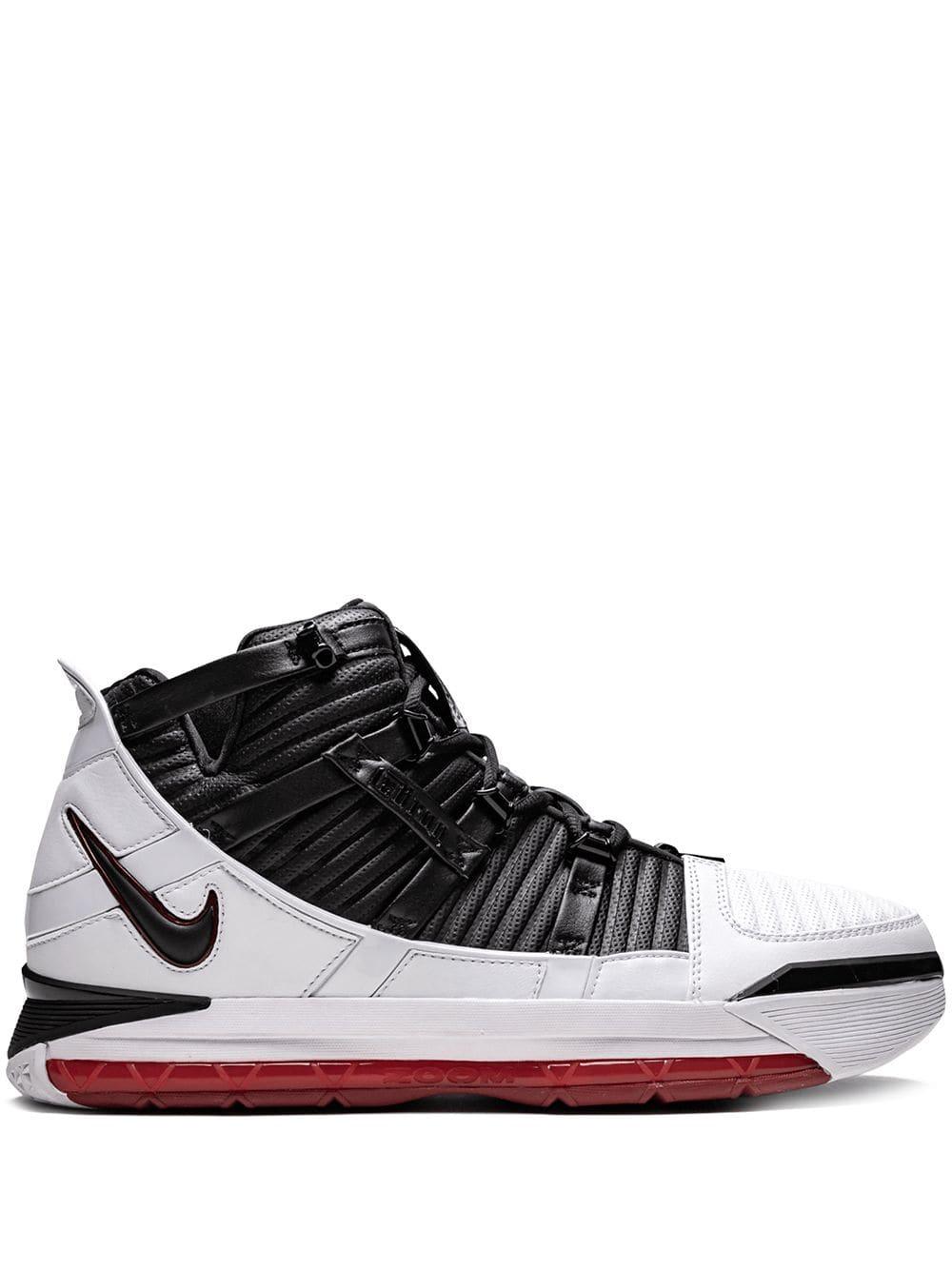 Zoom Lebron III QS sneakers van Nike uitgevoerd in leder voorzien van ronde neus, contrasterend colourblock design, kenmerkende Nike swoosh en enkellengte. Deze stijlen zijn geleverd door een premium sneaker en streetwear marktplaats, met een brede selectie vol hard-to-find sneakers en kledingitems van over de hele wereld. Kleur: zwart