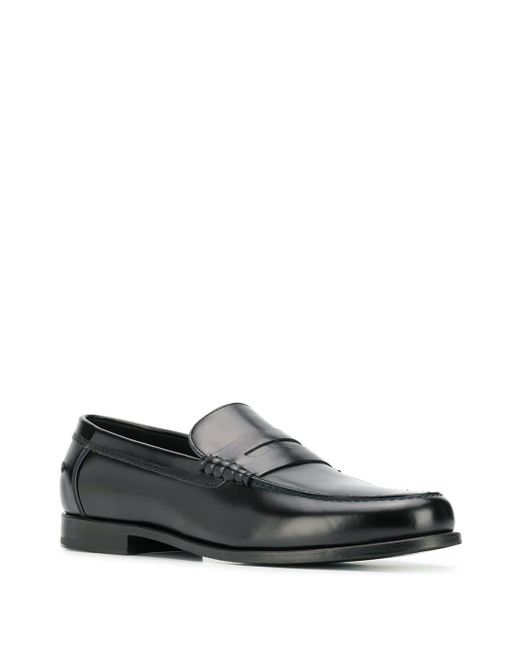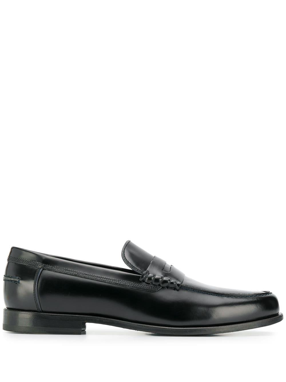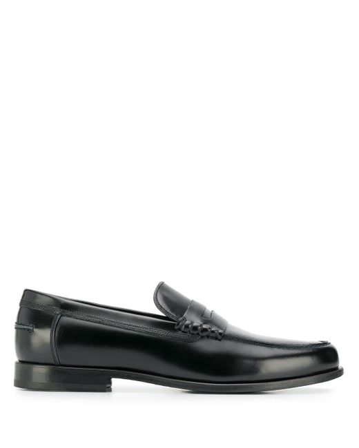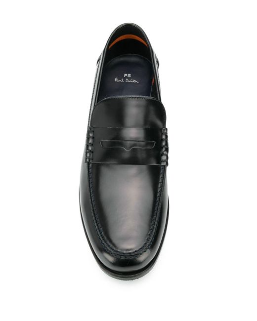 Klassieke loafers van PS Paul Smith uitgevoerd in leder voorzien van ronde neus, instappers en gestapelde hak. Kleur: zwart
