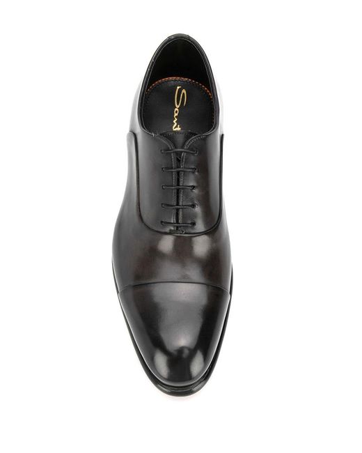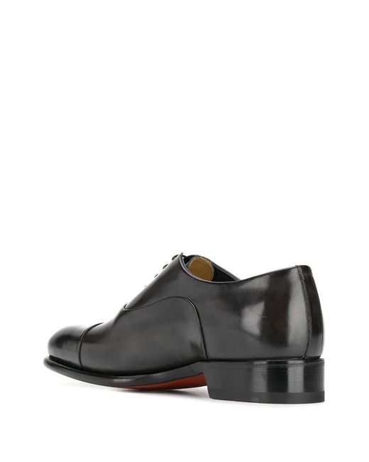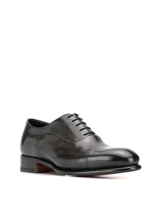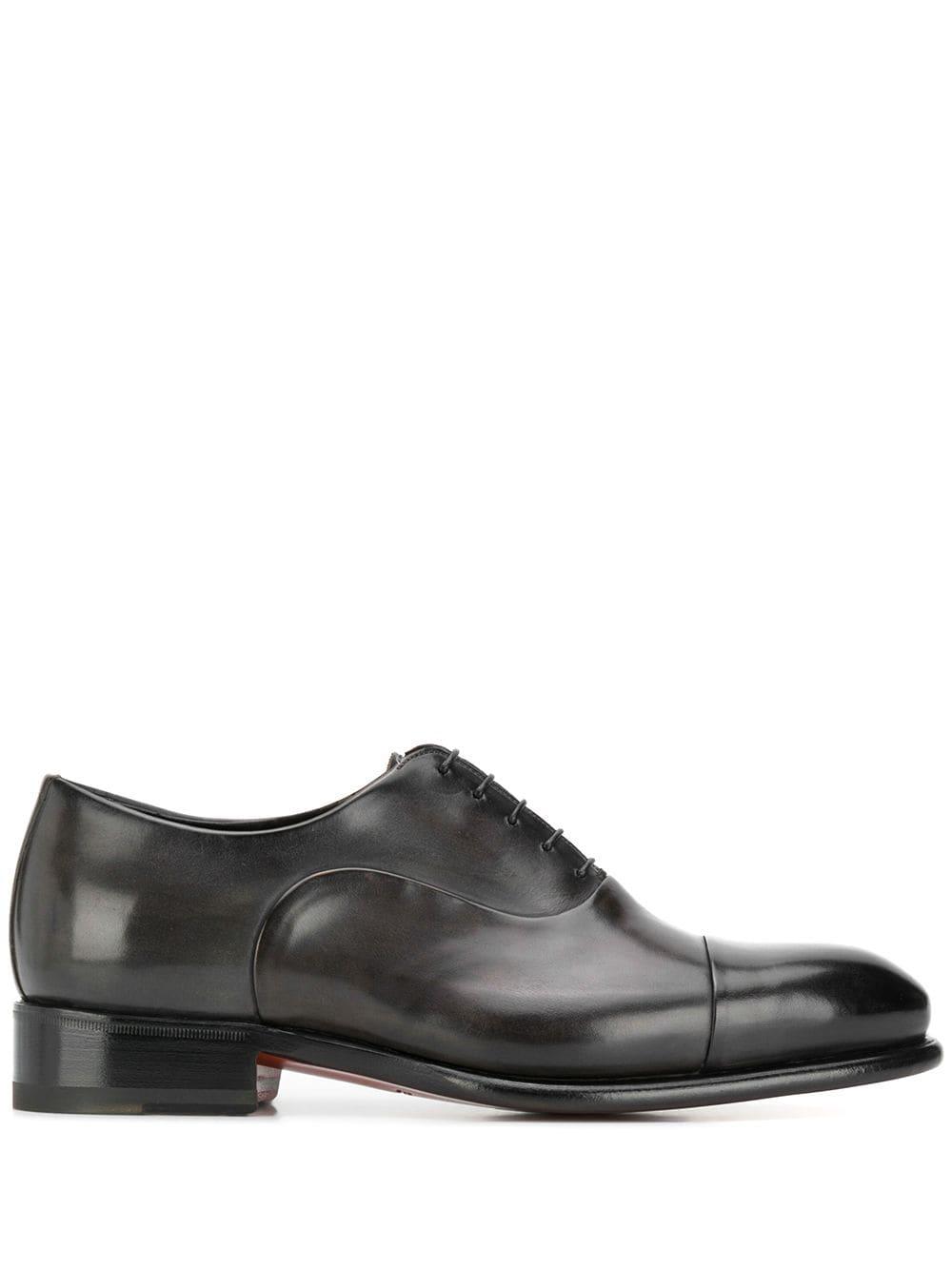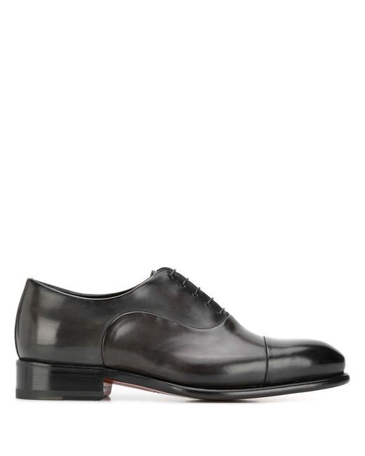 Derby veterschoenen van Santoni voorzien van puntige neus, vetersluiting en leren voetbed. Kleur: grijs