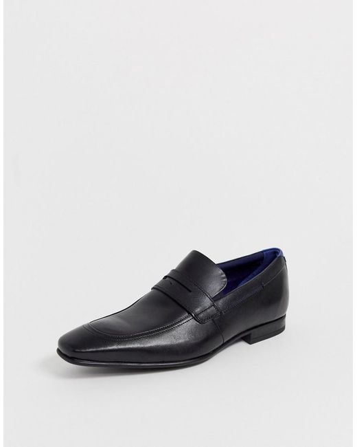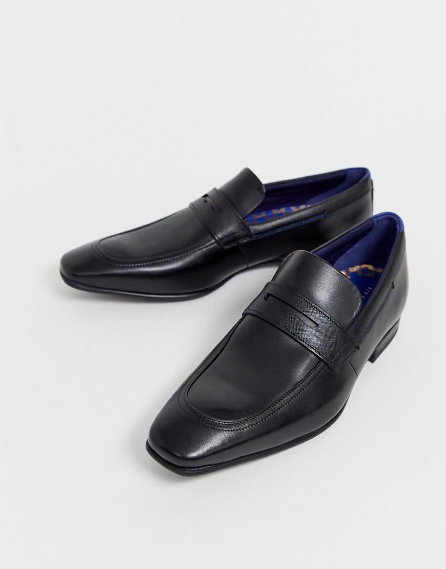Loafers van Ted Baker, Geef je sneakers een dagje vrij, Instapper, Smalle neus, Gemodelleerde zool. Het merk Ted Baker, dat bekend staat om zijn speelse details en individuele stijl, verkocht in het begin alleen overhemden. De Ted Baker lijn bevat tegenwoordig alles van kostuums tot jeans in een breed scala van stijlen. Let op: de smalle kostuums van dit merk vallen iets ruimer, voor een nauwsluitende pasvorm is het aanbevolen om een maat kleiner te bestellen. Leer. Kleur: zwart