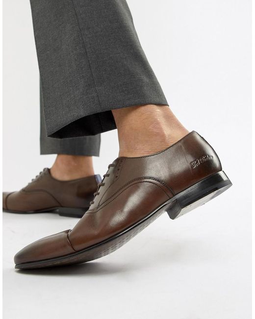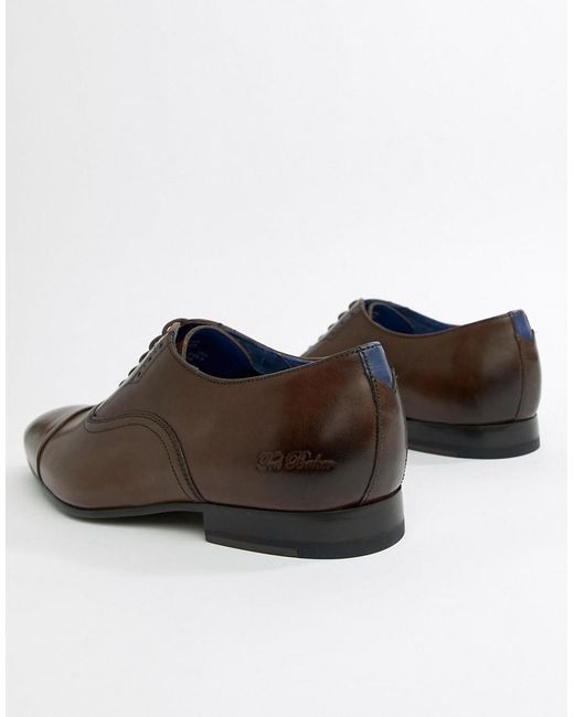 Schoenen van Ted Baker, Leren bovenwerk, Vetersluiting, Smalle neus, Teenstuk, Zool met profiel. Het merk Ted Baker, dat bekend staat om zijn speelse details en individuele stijl, verkocht in het begin alleen overhemden. De Ted Baker lijn bevat tegenwoordig alles van kostuums tot jeans in een breed scala van stijlen. Let op: de smalle kostuums van dit merk vallen iets ruimer, voor een nauwsluitende pasvorm is het aanbevolen om een maat kleiner te bestellen. Leer. Kleur: bruin