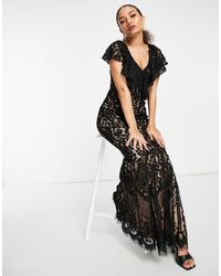 Asos Design - Tall - Midi-avondjurk Met Verlaagde Schouders En Strikdetail - Zwart