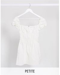 Gerimpelde Bardot Midi-jurk Met Korte Mouwen En Stippenprint - Wit